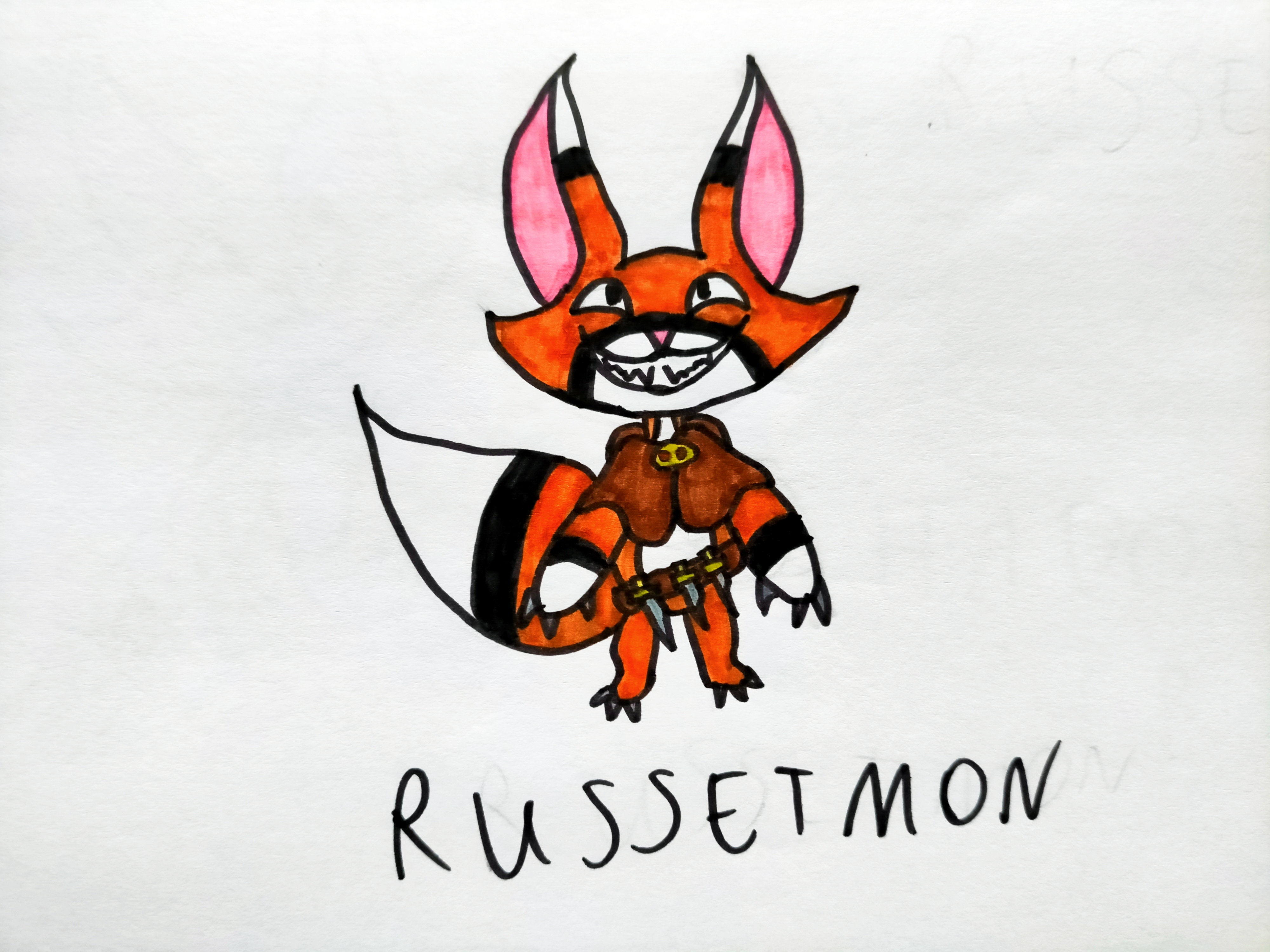 Fan digimon Level: Child/Rookie  Type: Data  Attribute: Dark  Attacks: Shadow dagger: Conjures daggers from nearby shadows and hurls them at enemies. Shadow cloak: Hides its body by melting into nearby shadows.  Description: A mammal Digimon resembling a small anthropomorphic fox, wich has absorbed data related to dark fairytales. As a result it is mischievous, sarcastic, a bit cynical and quick to disregard the feelings of others. Due to these traits it rarely makes friends and often feels quite lonely and wronged, as it cant understand the feelings of others well. Russetmon lacks physical power and relies on its intelligence, wich is higher then that of other Rookie Digimon, its shadow magic and stealth. Russetmon is indifferent to battling, its a way to get stronger, but it also puts you at risk of injury or worse. Wich is why it will always target an opponent it can handle, such as a sick digimon, or a Rookie that just evolved. It dons an old, worn cloak wich grants it the abillity to interact with shadows and a scabbard for holding multiple daggers. Thanks to the shadow cloak it can hide from threats by melting into shadows and when hiding isnt an option, fashion daggers from the darkness.  Hoodedmon. (Digimon oc)