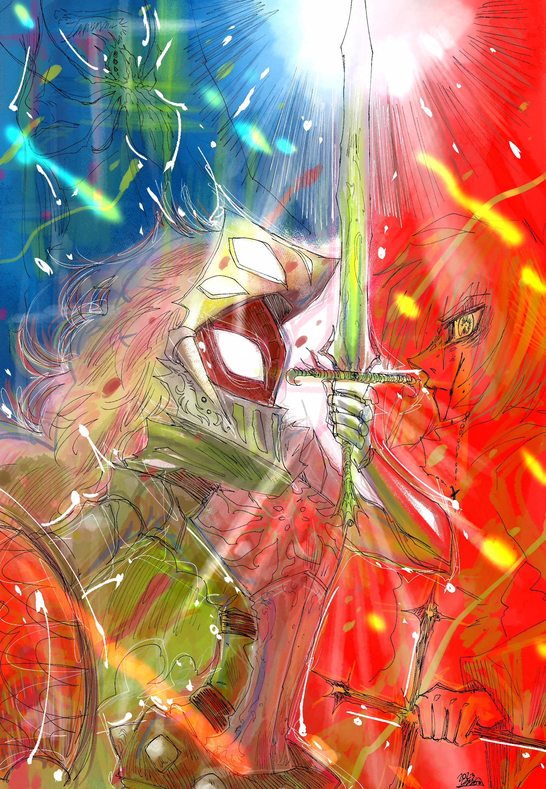 A young knight lies slain in the desert, his corpse attended by two scavengers. Another thing I did when I was first getting into digital art. Tbh my favorite part is the hooded crow.