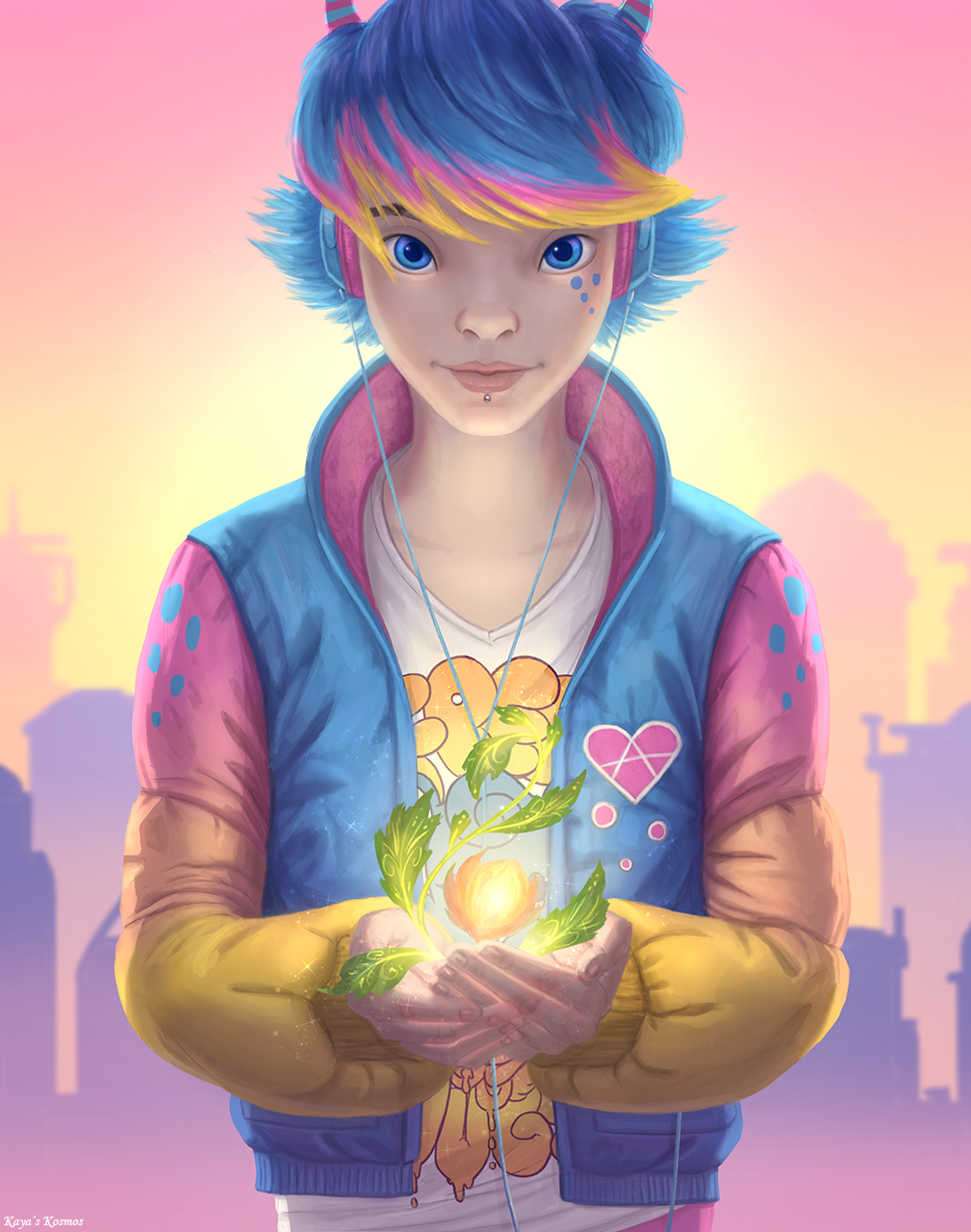 "Anarchy isn't about chaos, it's about love." This is the other main character in Flowerpunk, Kimi Hopper, also known as "Bubblegum Demon." He is the love interest of Ludwig Striker. Whereas Ludwig is loud, obnoxious and in-your-face, Kimi is gentle and sweet-natured. Kimi shares Ludwig's vision of a world where anyone can be their truest self without fear of discrimination - a world where human happiness and wellbeing replaces the profit motive as the driving ideology for advancing society. After ending up on the streets, Kimi narrowly escaped a violent assault from a police officer when Ludwig came to his rescue. Not much is known about this pastel-colour wearing young man. He hasn't spoken much about his past to Ludwig and wants to keep it that way, for both of their safety.