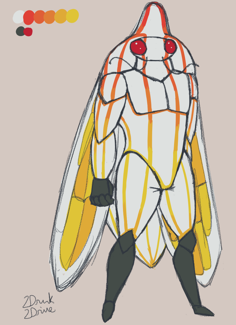 • A little concept sketch of an anthro Oak Treehopper, the general look was inspired by RedSlug