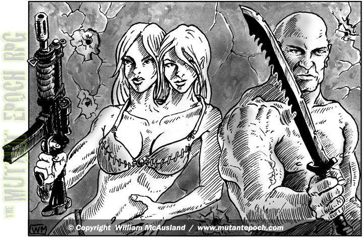 From the cover of The mutant Epoch role-playing game, this brute can hold the line all on his own. Photoshop smudge painting over graphite drawing.