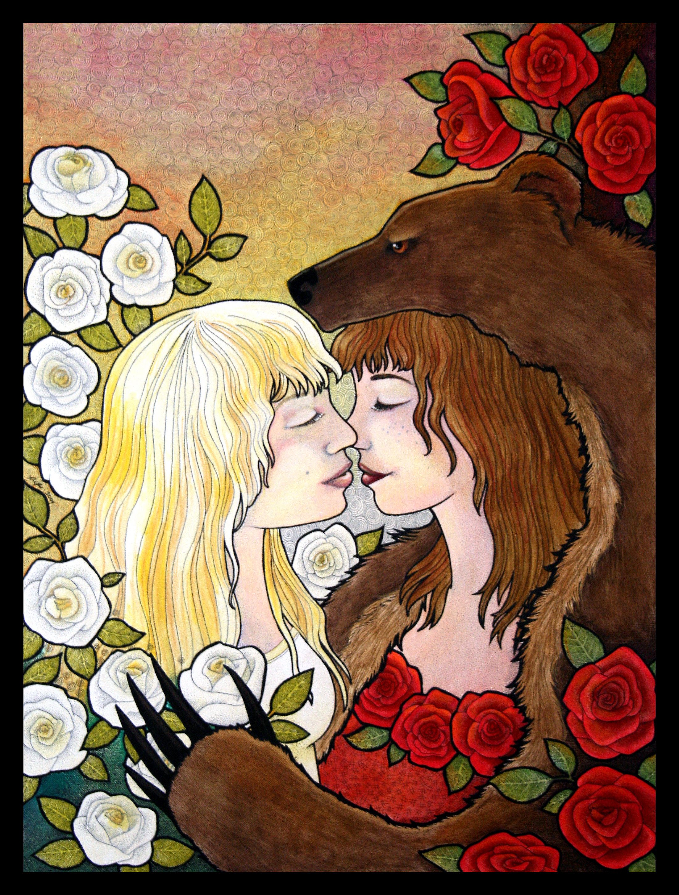 Not quite how the fairy tale went. Ink and coloured pencil on illustration board.