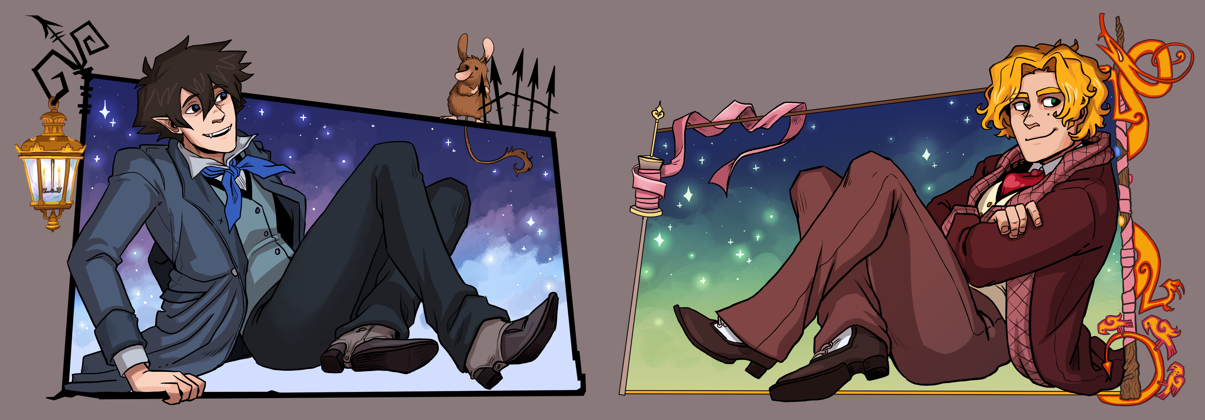 Oliver and Theodore! :) I always loved making elaborate character-ref introductions. Though my comic will have a lot of characters so I think I'll just stick with the main duo (or maybe a few more of the main cast, eventually, but maybe not all the side characters. I will die. OTL) www.inbloodwerise.com