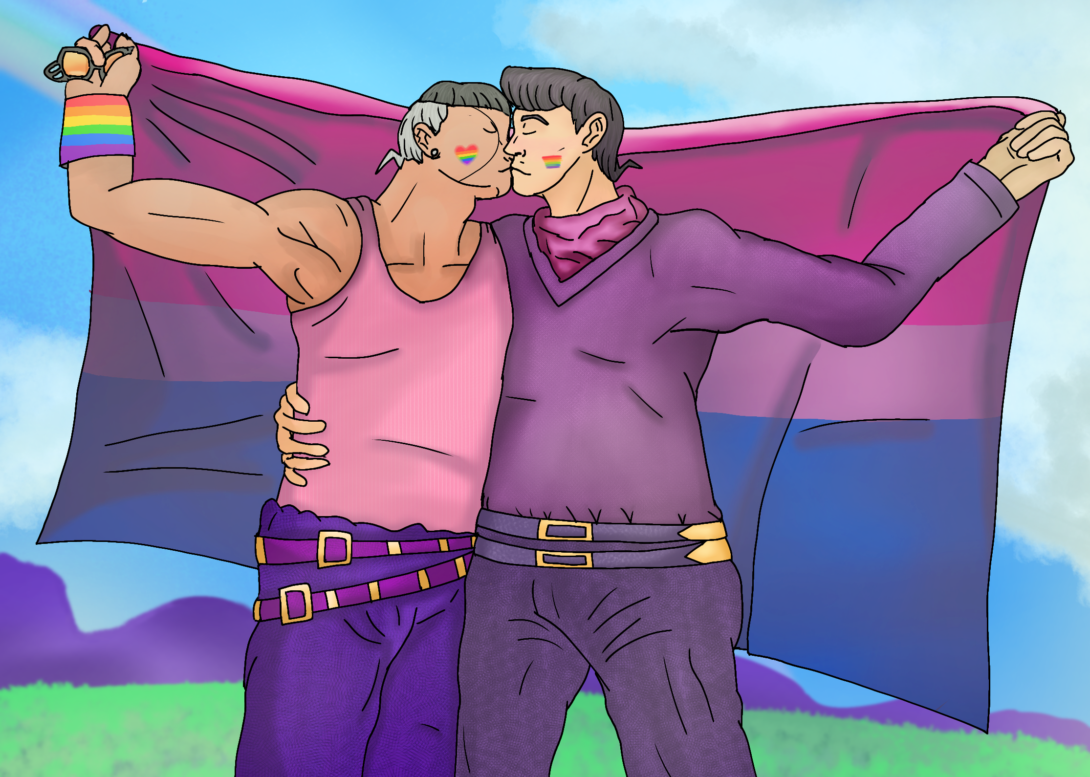 Pride art piece featuring the Morioh boys, Josuke and Okuyasu!