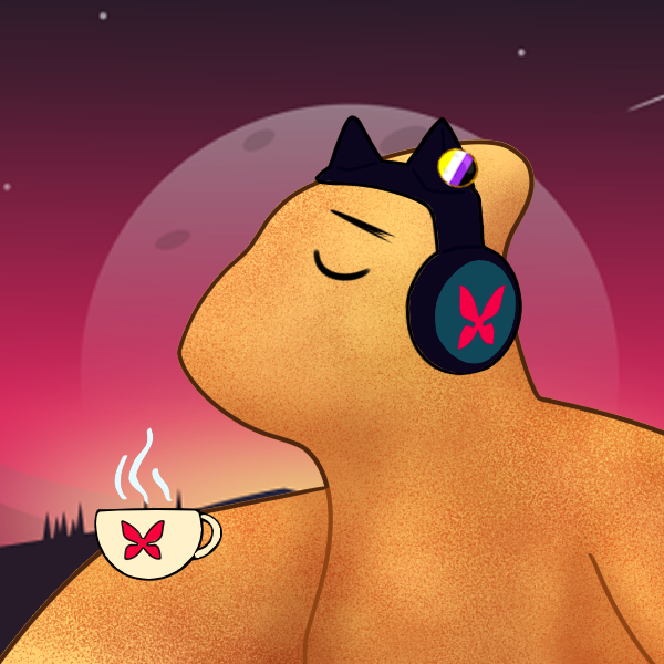 • A little ptero, blissfully listening to some lofi-beats. Made for the Dino Nuggie event https://picrew.me/en/secret_image_maker/tV8D1Uheulbec2SA.