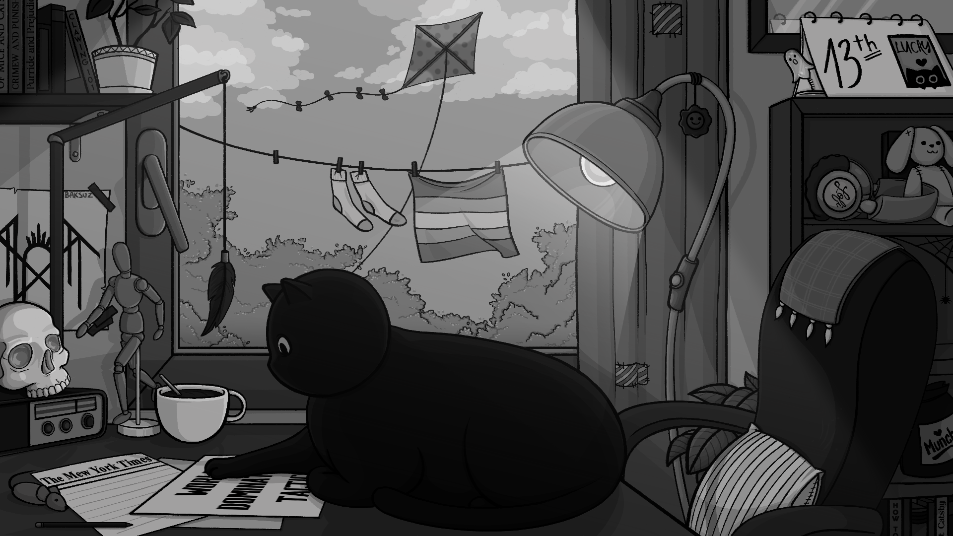 happy friday the 13th! ๐Ÿ–ค i was waiting for this day to post this lol: lofi girl, but make her a kitty ๐Ÿ˜บ as you can see, she's very busy with some serious work ๐Ÿ˜ณ i will also post linework version only on my tumblr and pillowfort, for people who like to colour stuff ๐Ÿ˜Š