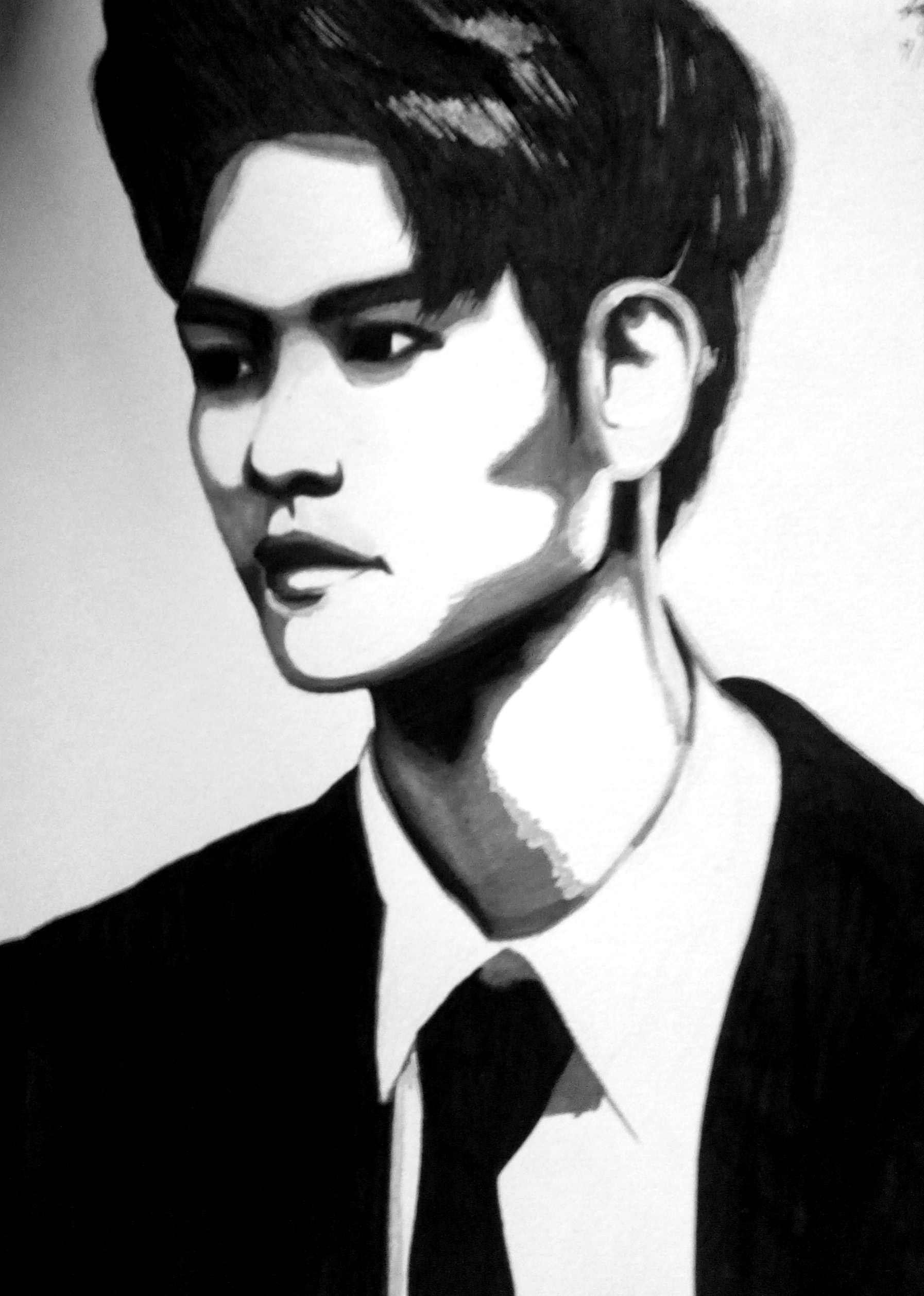 So I think I was drawing these monochrome portraits while I was in my KPop phase, ngl. But anyways, done using only black, grey, and white markers.