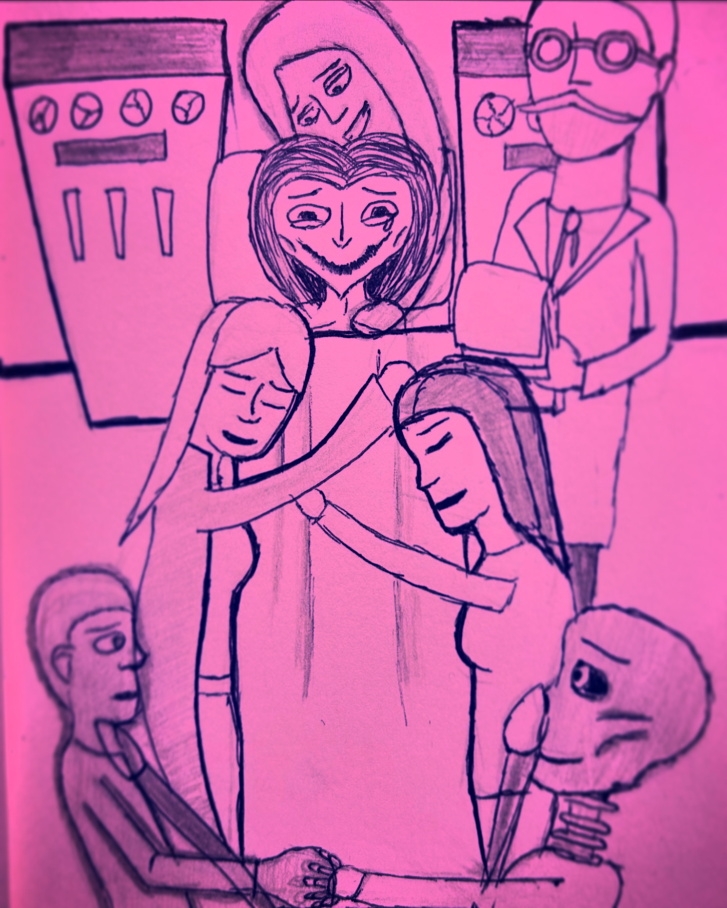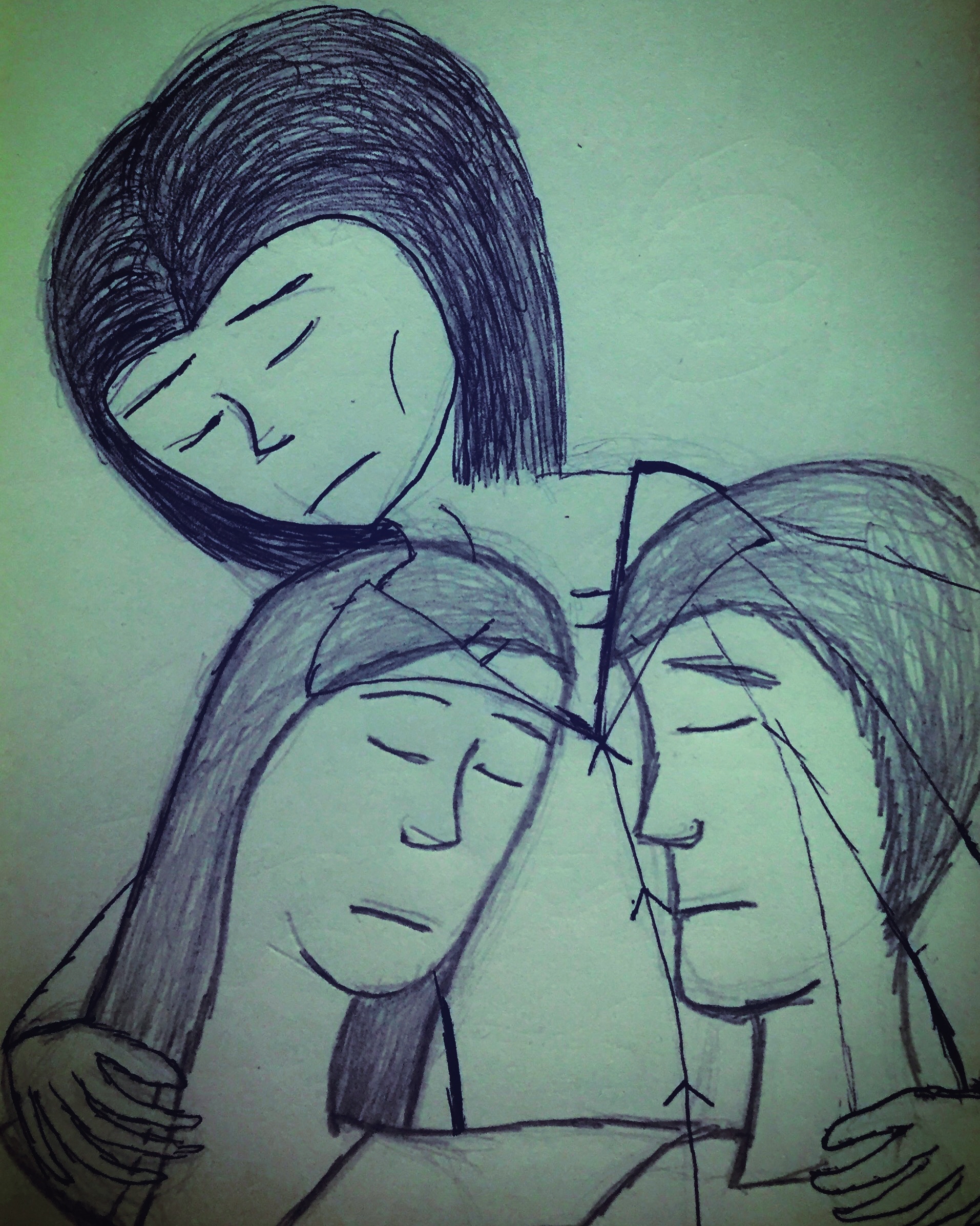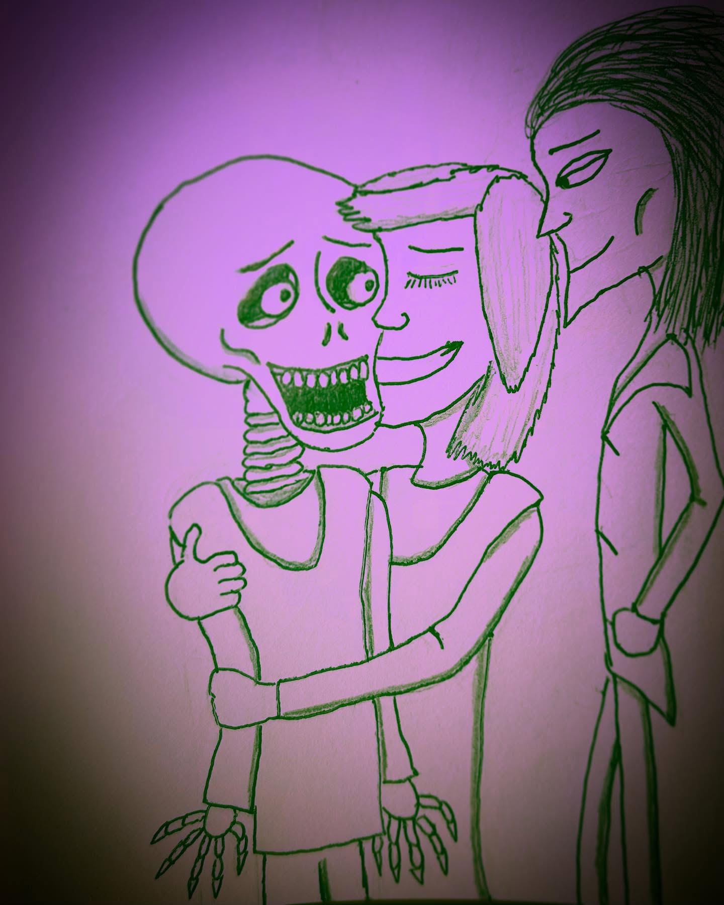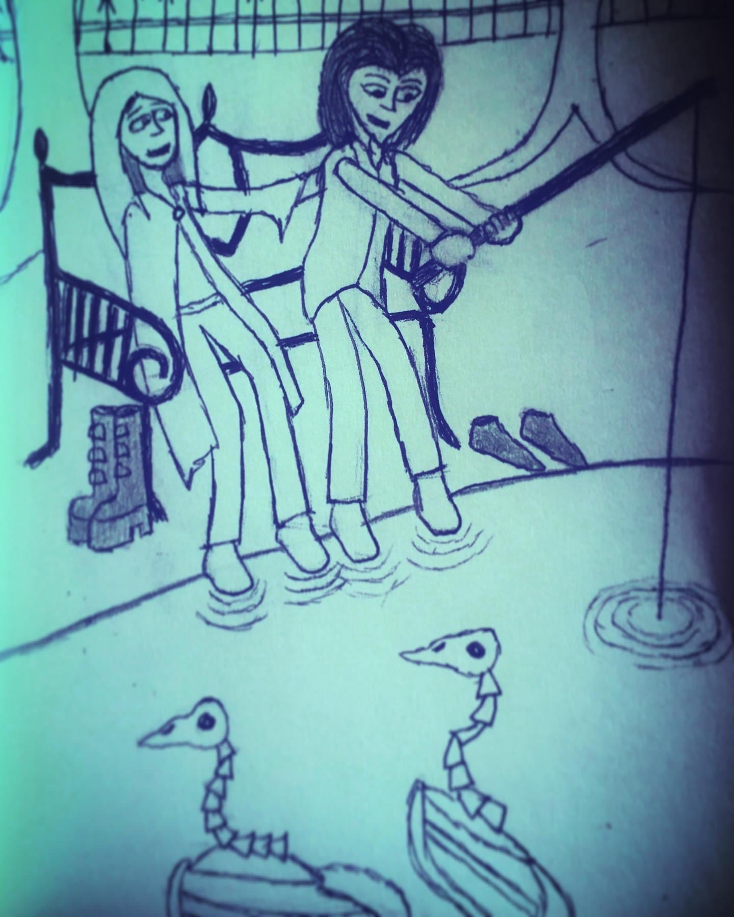 A peaceful Sunday at Goth Park with Silas and his metamour Adrienne. Originally drawn October 8 2023