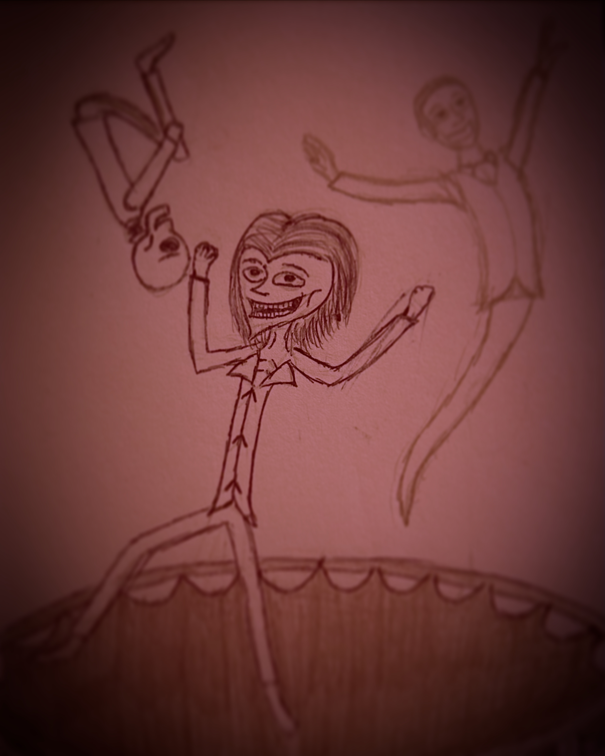 Silas springs into action to entertain his spooky metamours. Due to conflicting schedules with the sunlight, vampiric Baron Valentino could not join them. #worldjumpday #worldtrampolineday #metamours #metamour