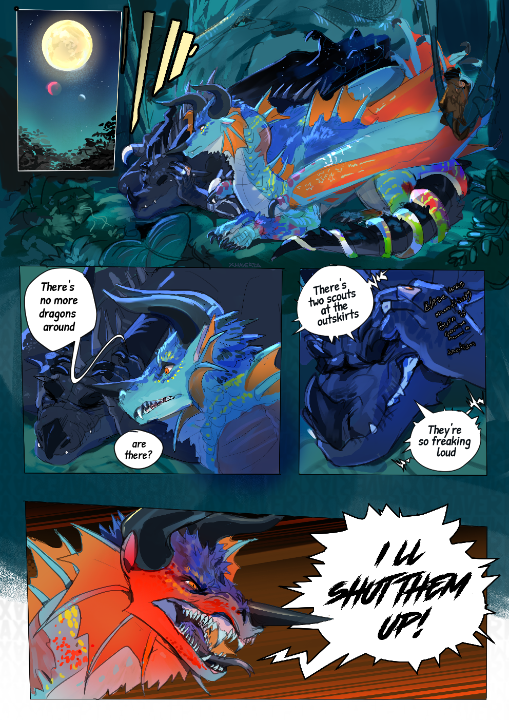 PART 1 | PART 2 (soon) Drawing these dragons for Smaugust! Yet another AU I have which I drew the rest of my ocs as Wings of Fire [dragons](https://inkblot.art/post/UNO6KrzzVyAmLMq4RBnW) Jorge- as a nightwing Valerie- as a rainwing with a few rainwing qualities~ It's been a long time since I did a full comic page but I'm having a great time doing this learning a lot specially with the ballons. Hope you all dragon fans enjoy this small story I'll be working on!