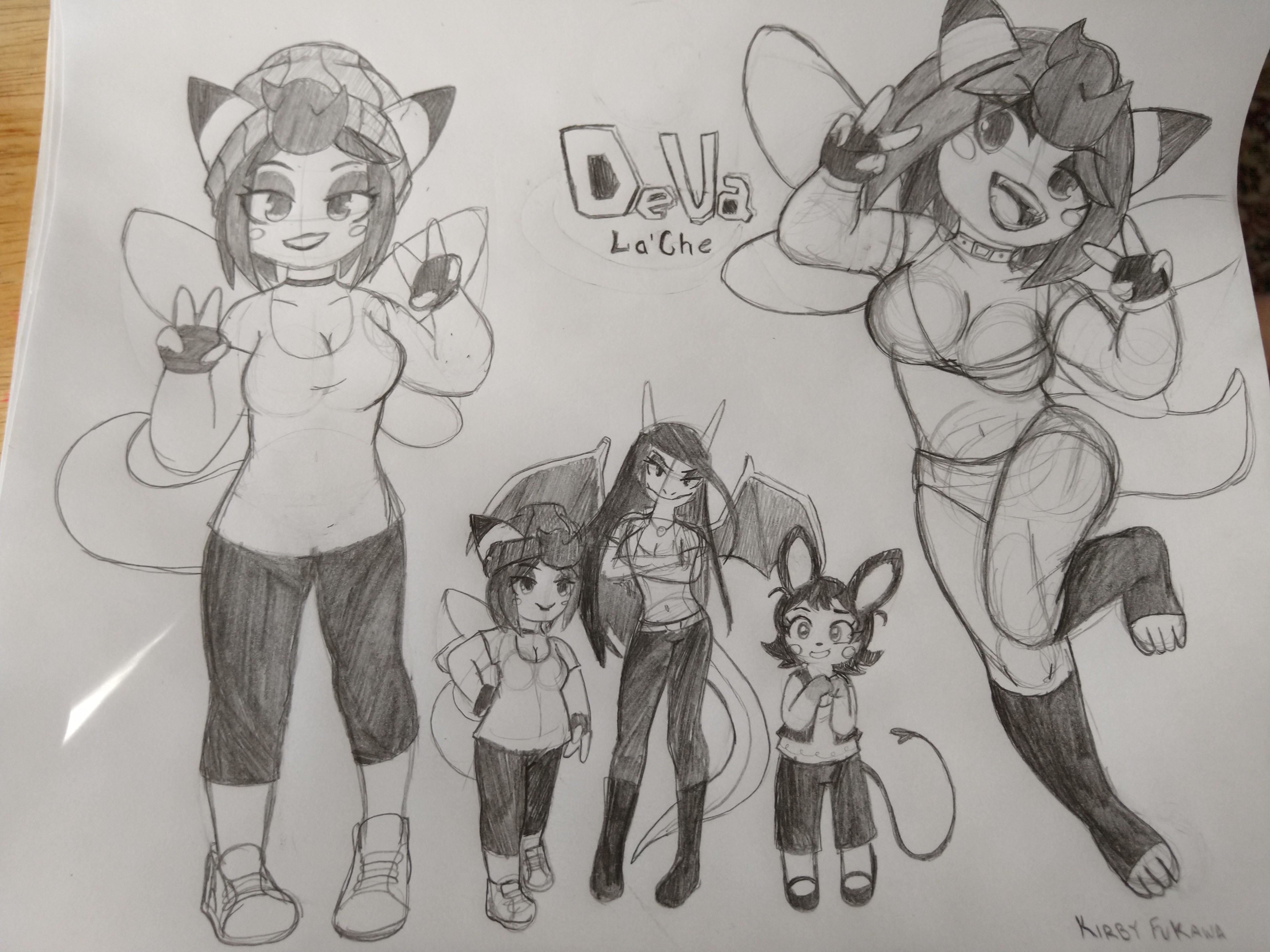 • Some rough sketches of a new OC. Her name is DeVa La'Che (pronounced DAY-vuh Luh-KAY).