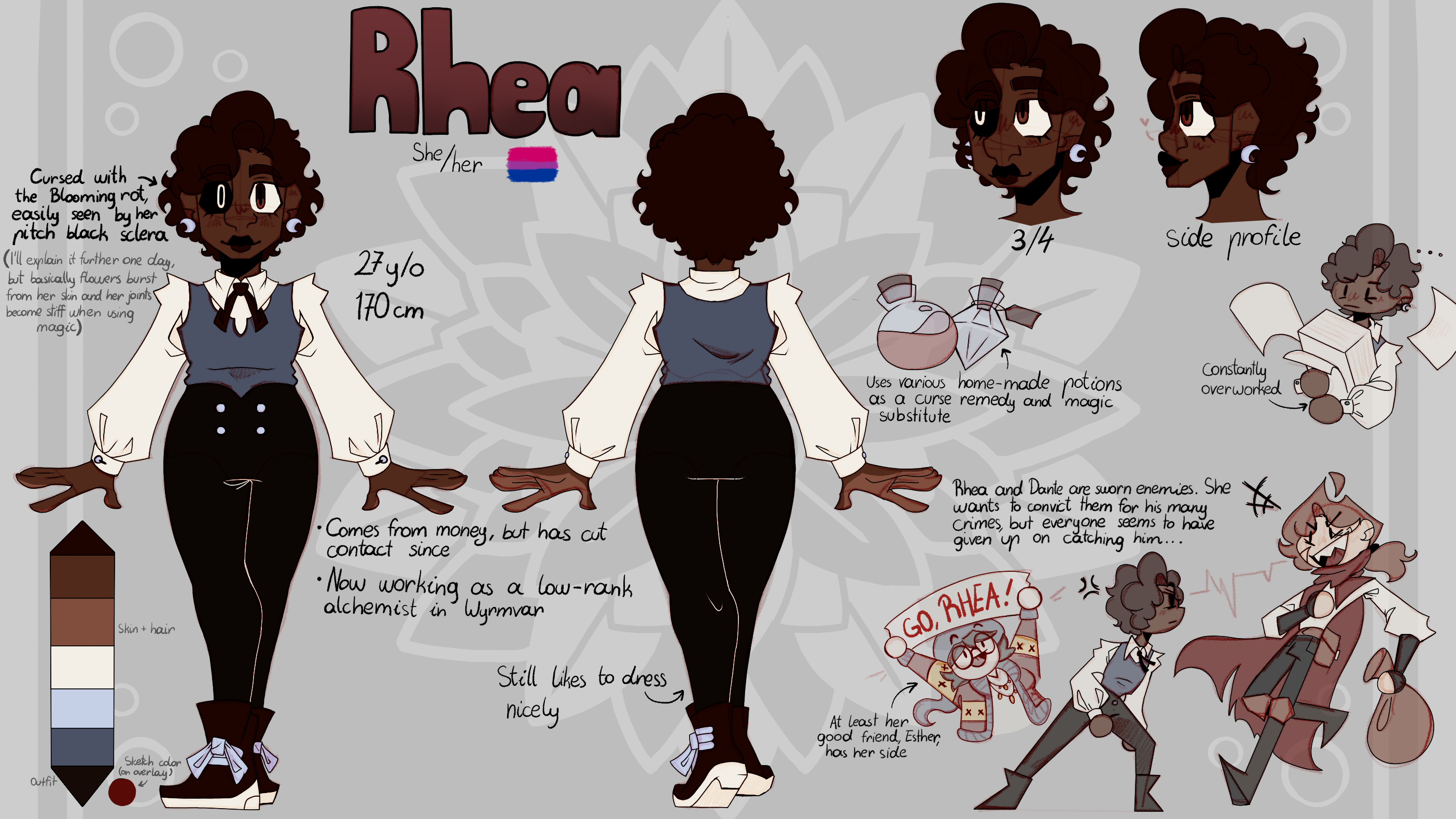 References for ArtFight part 1! Here's my profile if you want to be mutuals and for me to put you on my hit-list >:) [https://artfight.net/~blue_sun08](https://artfight.net/~blue_sun08) And here's any additional info for my characters you might want: [https://unvale.io/bluesun08](https://unvale.io/bluesun08) Hope you like how I do my refs, because I'm really proud of how this one came out, Dante and Ash are also in the works and I'll probably do a couple more if can manage it, see ya' until next time!