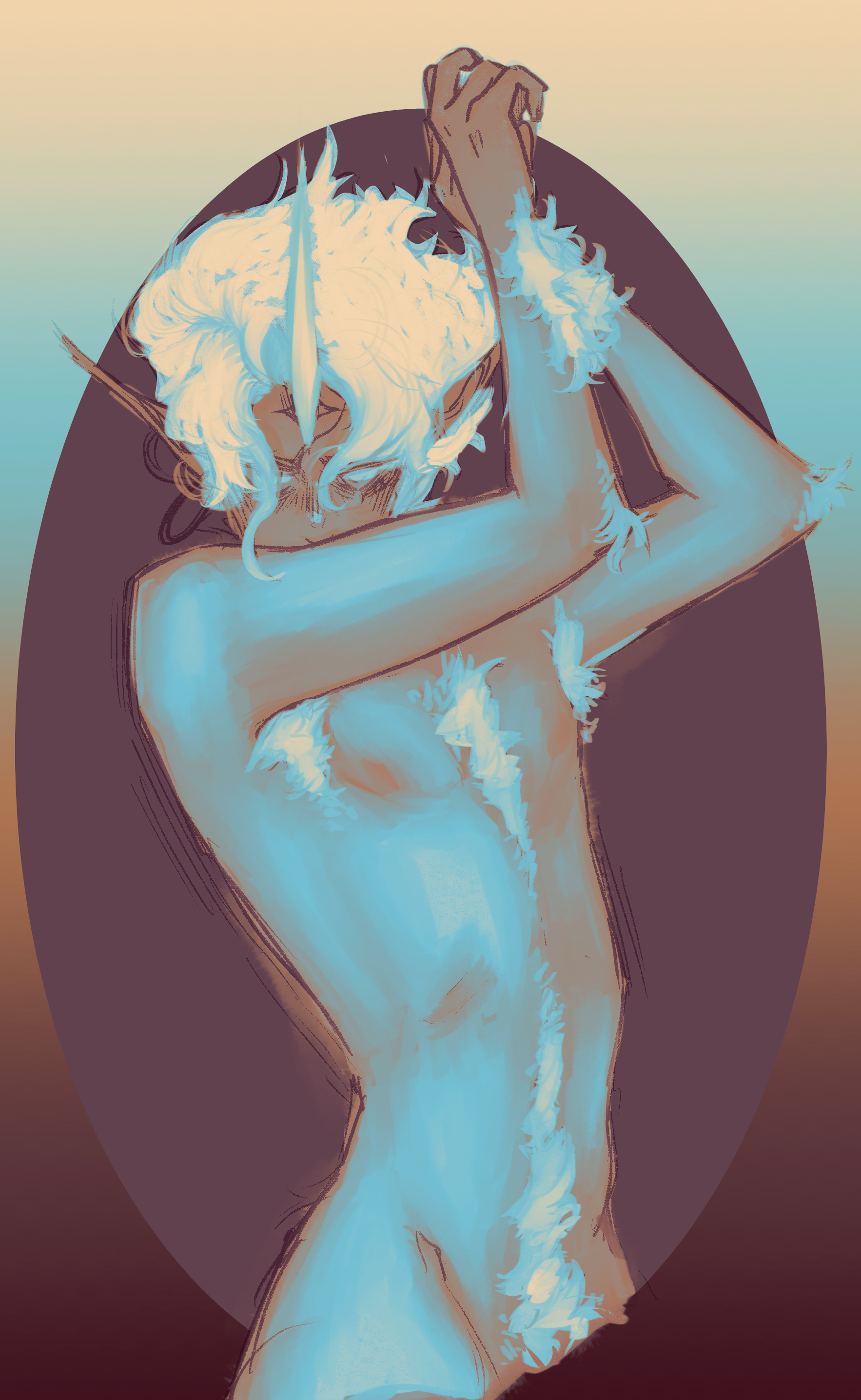More birds? More birds. This is Aquila, Aquarius’s companion and fellow bolt slinger! The constellation is based on the eagle that would bring Zeus his lightning bolts, and considering Aquarius’s weather / storm theming, that seemed like a good fit. I also took inspiration from the mythical thunderbird for similar reasons.