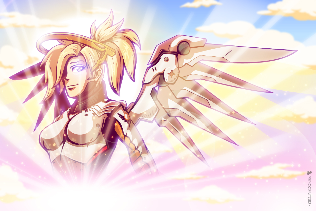 • Vector illustration of Mercy, the angelic protector and healer from the ever-expanding cast of Overwatch, the team-based FPS by Blizzard Entertainment. Before I became a main tank player I primarily played Mercy. Yea... (Drawn 2020)