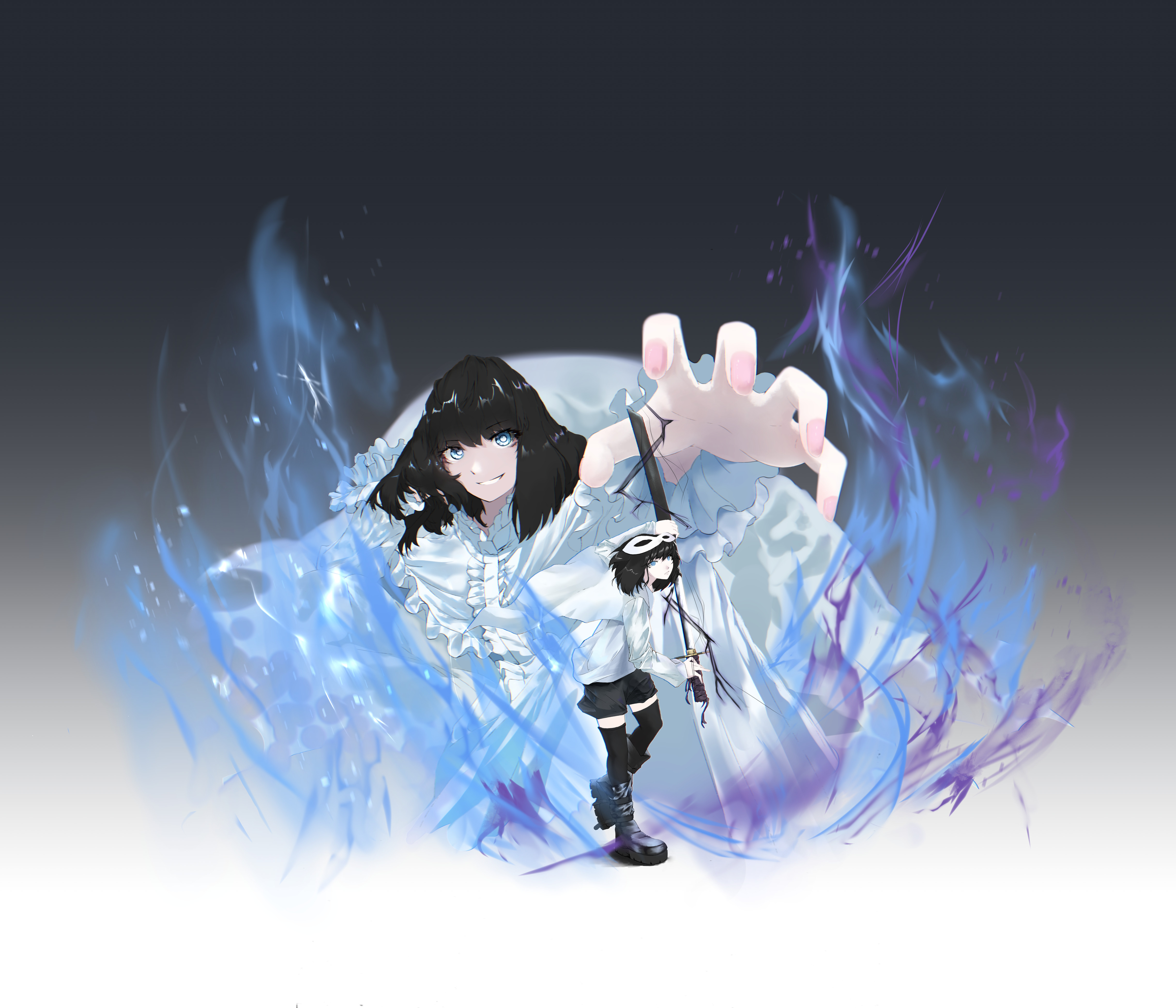 "A war orphan adopted by a travelling swordmaster. Haunted by his past, he was eventually found by his pursuers and Aria came back to a scene of her adoptive family being brutally murdered including his students. Traumatized, she threw away her humanity and let hatred fully consume her, awakening a second personality. In order to quickly achieve the strength she needs for vengeance, she went through rigorous training in the depths of the forbidden zone where the most dangerous and hungriest beasts lurk. Treading the line between life and death for years, she gained unparalleled combat sense as if she was possessed by the devil. Soon after she came back from hell, one by one her targets started to get mysteriously eviscerated at night. Boasting extreme reflexes, agility and spatial awareness, she's virtually untouchable and leaves her victims with the feeling of fighting a ghost. Clad in white and appearing at night, people started calling her the "White Phantom". With no more targets remaining, she's now left to deal with the feeling of emptiness as she never expected to survive. Mindbroken and lost, she wanders aimlessly going where the wind takes her. Trying to go back to her peaceful days, she buried her second self deep within herself and pretend that it never happened. Years later, she meets Rika and Johnny..."