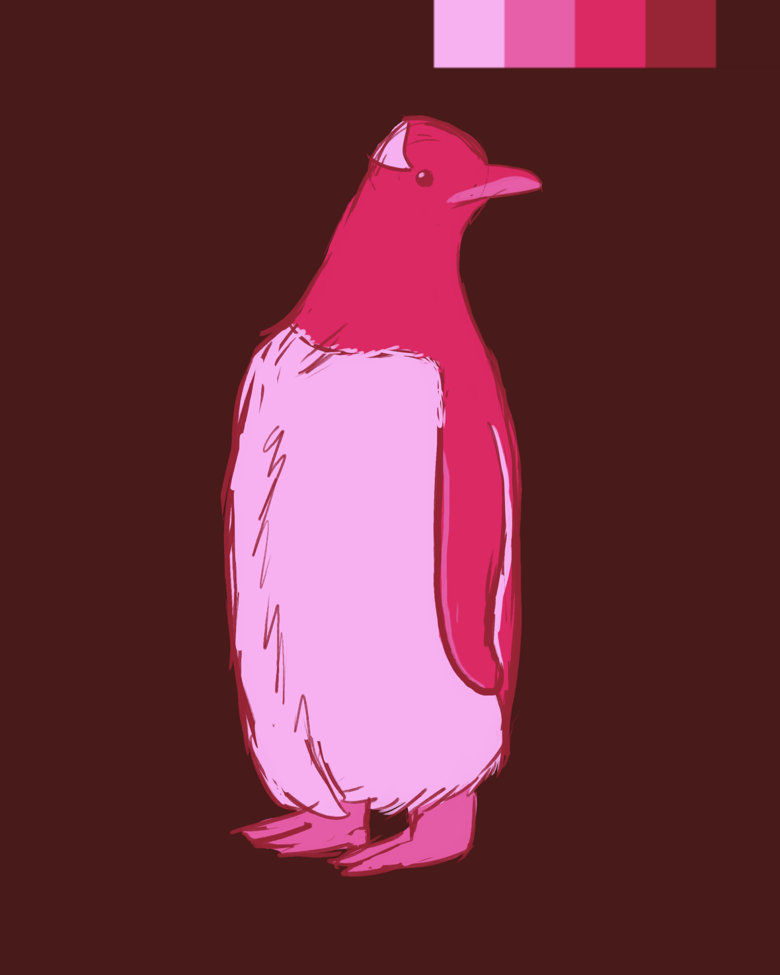 Another dinovember piece.  I like the palette I used for this one. [ID: A gentoo penguin depicted in various shades of pink. /ID]