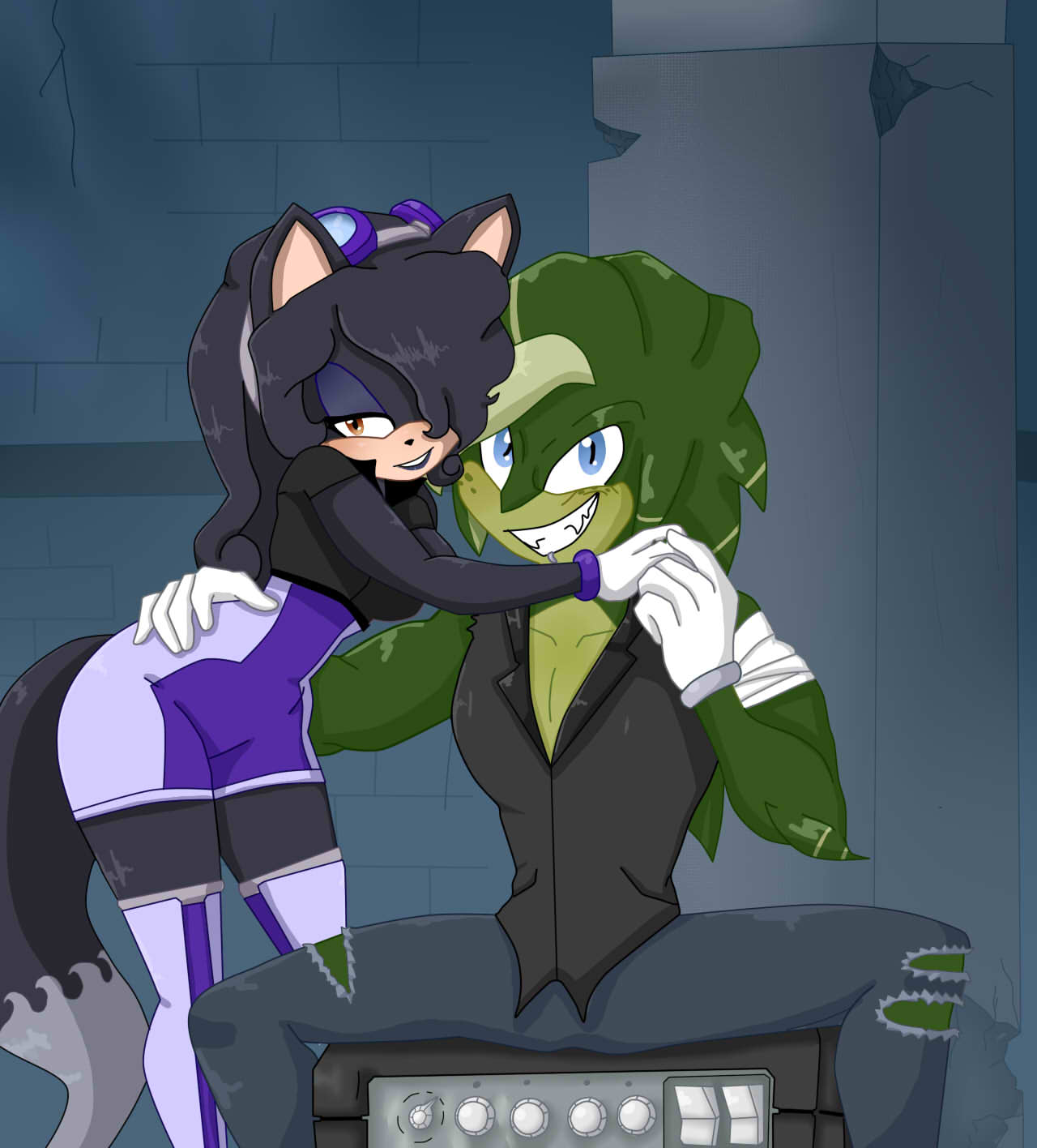 I saw this base Sonic couple base F2U by EmberLovesStealing and wanted to try it as I've been in a sonic mood and thought it would be a good match for my Next gen oc Dawn and Cricket . I thought it was fun to interpret what animals they would be (which was especially hard for Cricket as his moms a fish alien and his dad is a mutant). I decided on a shark/piranha mix as it felt the most natural (I was thinking about him being an alligator, yet it didn't fit him.) Dawn at first was a cat (being a witch and all) yet when I was thinking about her personality and her families legacy she'd be a fox. A cunning, sly fox with a lot of bad luck. As for There roles in a sonic AU (that I had running in my head) Dawn would be in the racing scene with her own team, abandoning her duties as a witch to travel the world, only causing a bit of trouble. While Cricket and his crew are a group of wannabe thieves who are no more than a small thorn in Sonic's side. Some where along the way Dawn became smitten with Cricket, starting a long, turbulent, on and off relationship (Dawn may or may not have accidently ruined a few of Crickets schemes and Cricket has an ego). Still they work well together, sometimes. --- Any way I hope you all like it. Cricket (Son of Big Billy and Tammy), Dawn (Daughter of Dick and Monnica) Belong to me base belong to EmberLovesStealing