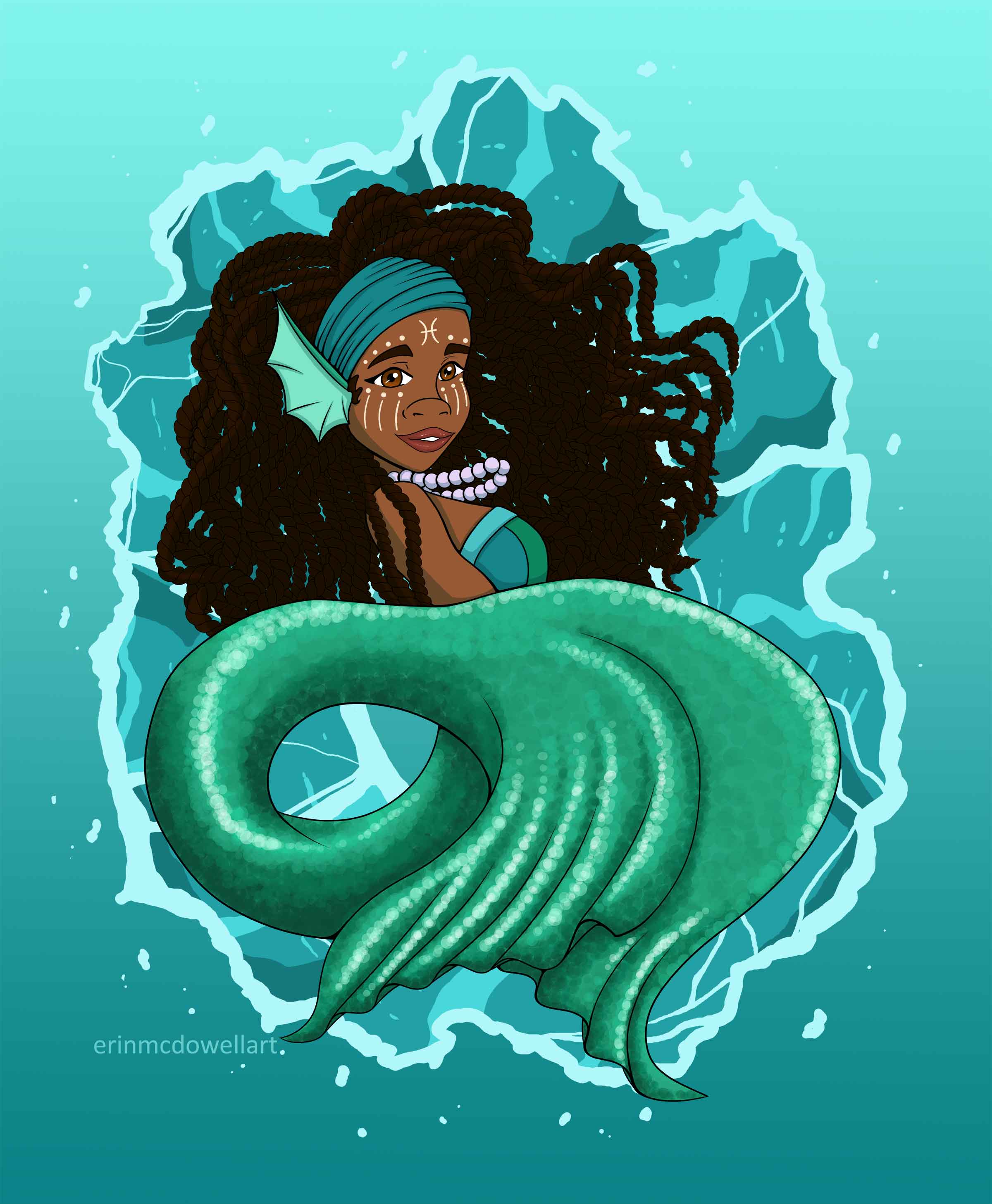 **Originally Created On:** July 27th, 2020 Completing any art felt like feebly scratching at a wall at the time, but I got this done at least. :’) Some tweaks to Pisces’s design! Like Aquarius it was another case of “don’t fix what isn’t broken”, but I wanted to amp up the frilliness of her fins to keep with the “feathery show dancer costume meets lionfish” look that was the basis for her design in the first place, as well as giving her outfit and scales even more flow to match her shape language. I also didn’t realize how desaturated her colours were??? I don’t know why it took me so long to notice, but I fixed that too. The colour palette is the same, just with the saturation slider moved up a bit. I think it gives her more “life”, especially in her skin tone, and with her bubbly personality a well saturated colour palette suits her. I imagine the blue accents would glow a bit in darker water, almost like bioluminescence. And it might’ve been harder to notice with Aquarius, but now her and Pisces both have rings on their fingers! A detail like that isn’t always necessary or noticeable when it comes to stylized/simplified designs, but I wanted to add it in since they’re a couple. :’D I have a few other tweaks in mind for some of the other designs, but I’m getting close to where I feel like they’re all “finished” in my eyes, like Cassie has been for a while.