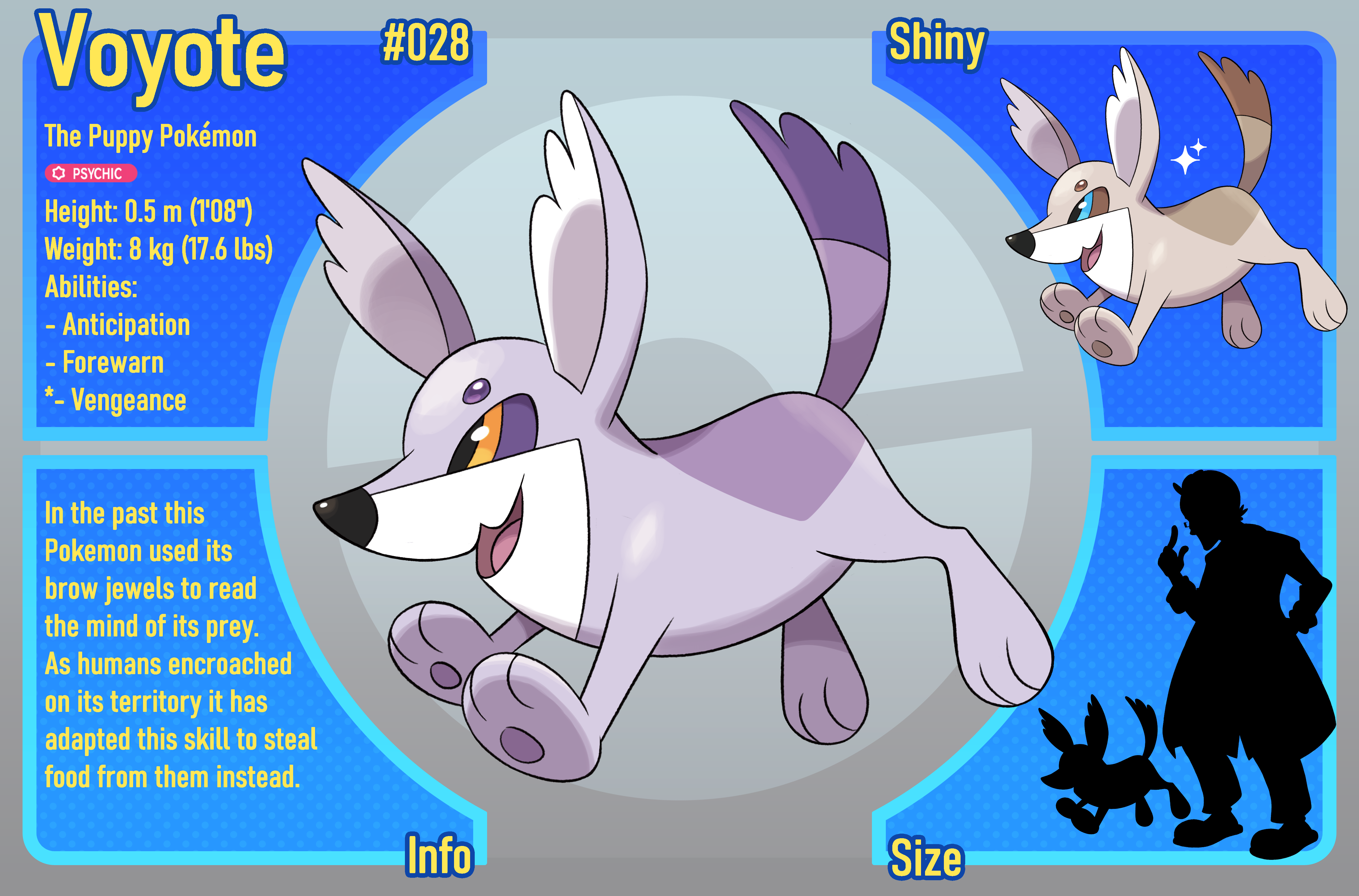 Not a recent piece just one I realize I somehow overlooked uploading here altogether. Anyway back when I was first setting up my fan region I used this little fellow as basically my test mon to figure out things like if the Pokedex sheet looked nice and what brush settings I wanted to use to try to semi emulate the look of the official Pokemon art. Since its hidden ability is a brand new Vengeance works very similarly to the move Future Sight where, once the Pokemon with this ability is knocked out, a 120 base power 100% accurate psychic special attack hits two turns later. The damage is calculate based on fainted Pokemon's special attack stat on the turn of fainting and this ability only activates once per battle (so its not a terrible ability but also not a particularly overpowered one that would break this hypothetical game).