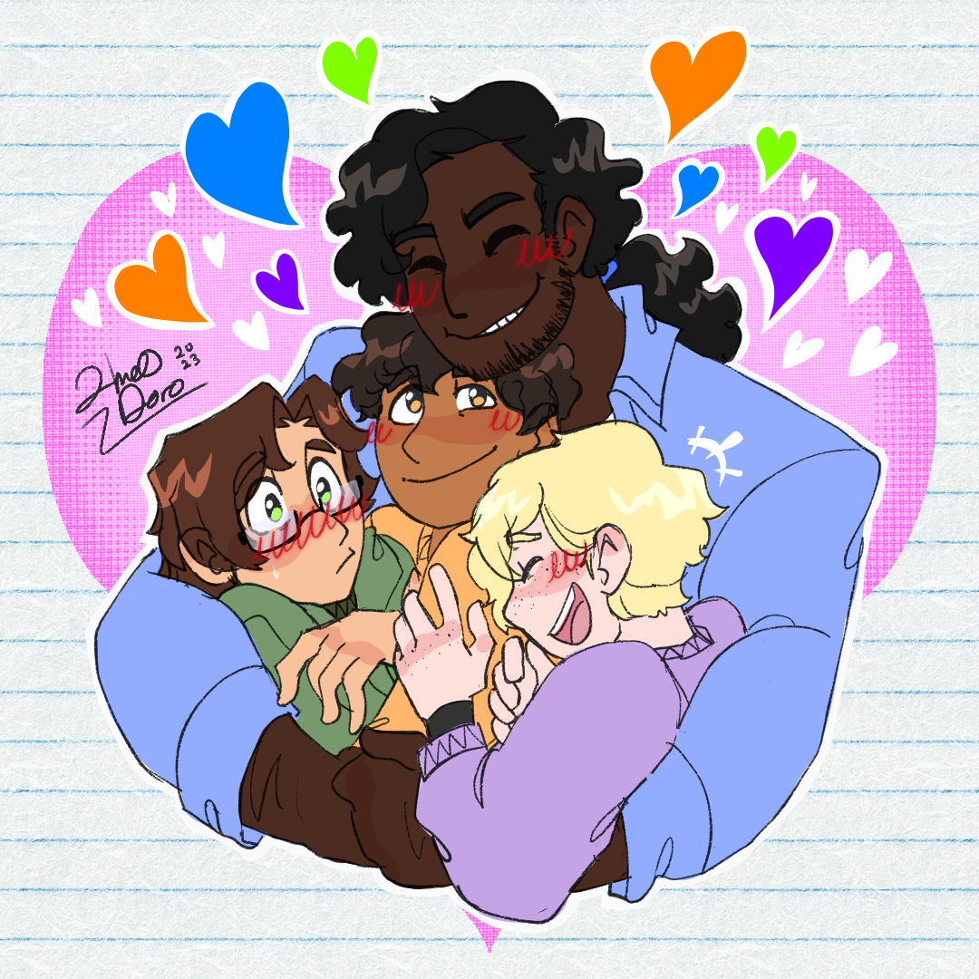 * 💚 Cyparissus * 🧡 Apollo * 💜 Hyacinthus * 💙 Branchus I just think the concept idea of comfy slice of life, polyamory & found family combined is pretty neat. :-)