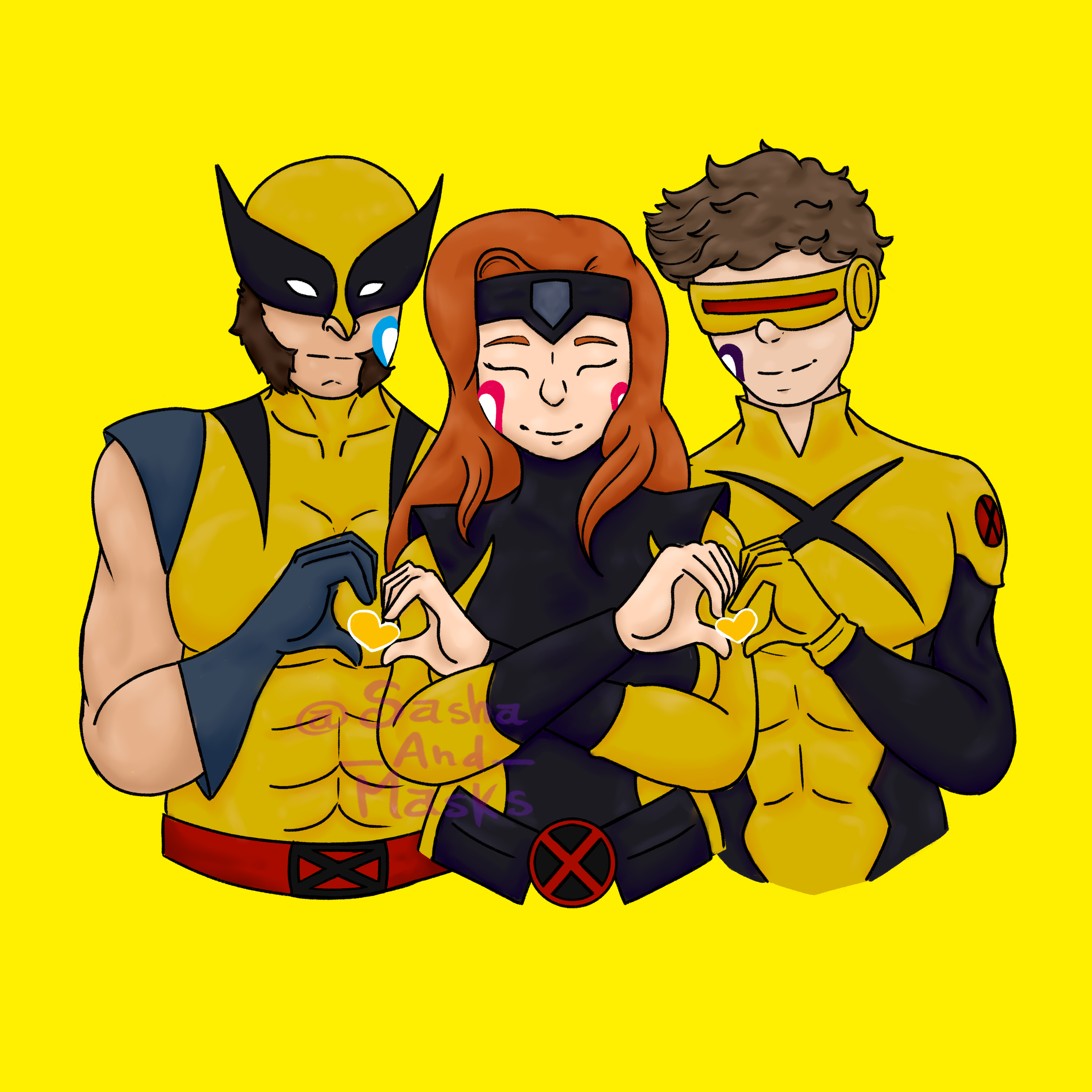 This year requested arts starting with some Marvel! Did struggle a bit with this one but hope y'all enjoy Characters: Wolverine, Jean Grey, Cyclops (Marvel) Flag: Polyamory