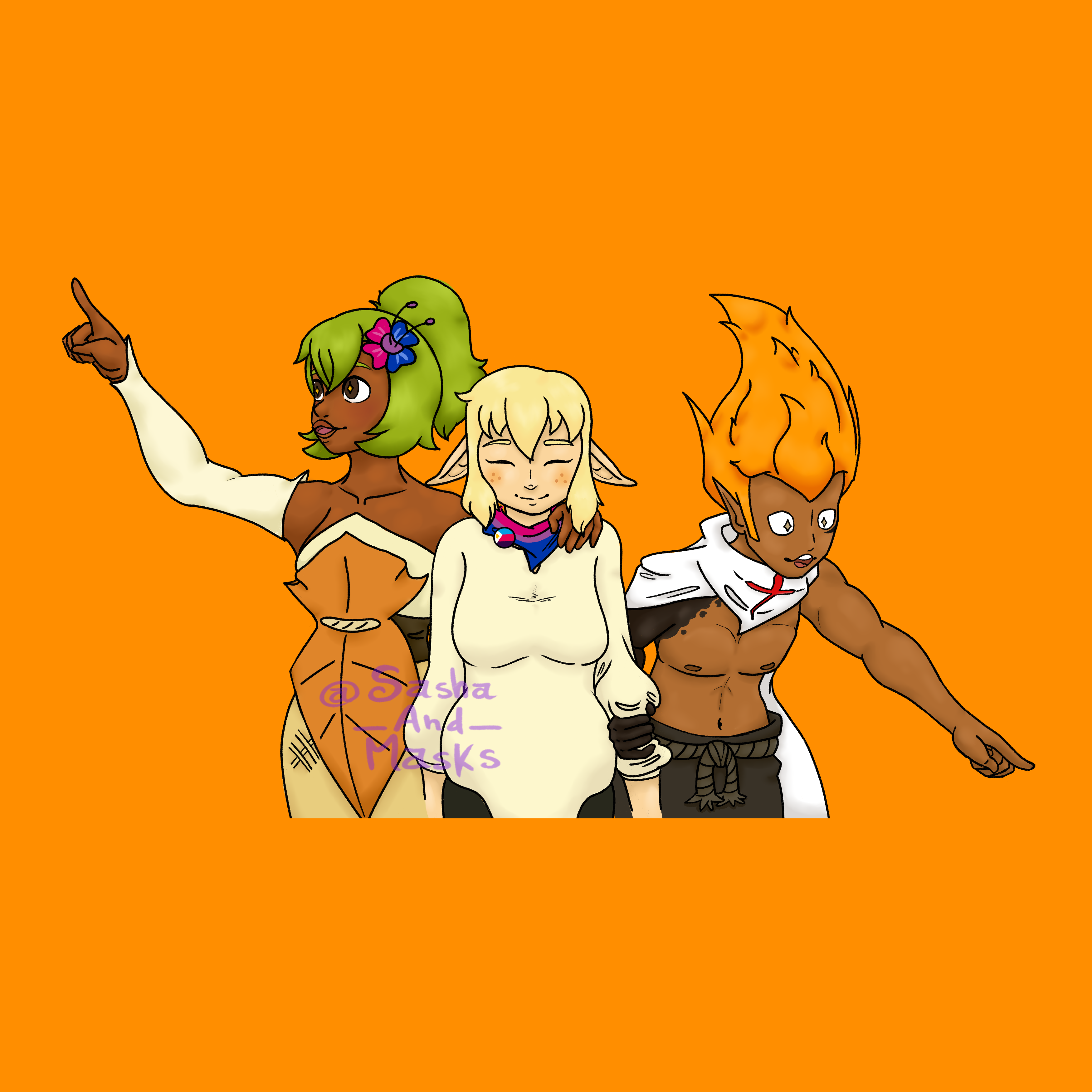 Finally gay and happy Characters: Sasha (mirror pronouns), ElQuackity (he/him), Quackity (he/him), Elena (she/her) Flags: Asexual, Non binary, Gay, Polyamory, Agender, AroAce, Bisexual, Transgender, Aromantic Disclaimer: This art is of our alter Sasha, all characters drawn here are according to his memories of them, no debate/headcanons will be tolerated on this post