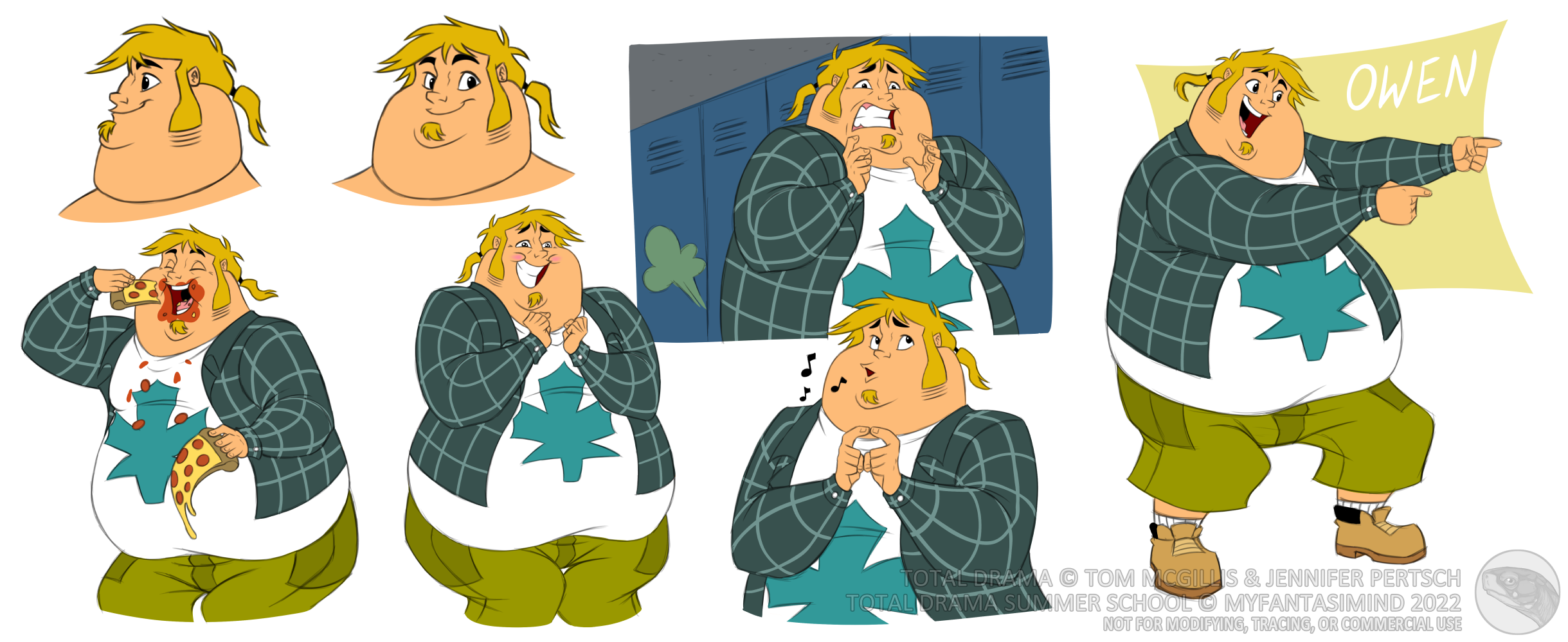 Total Drama © Fresh TV -- Billy Madison © Universal Pictures -- Tommy Boy © Paramount Pictures -- Total Drama Summer School, Art & Older Owen's Design © MyFantasiMind 2022