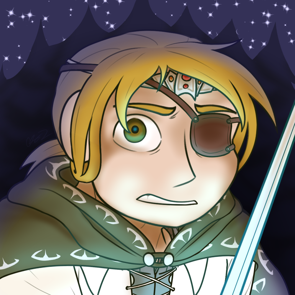 Pathfinder version of mah boi Been a while since I really shaded anything, but it's a drawing I've had on the back-burner for??? Exactly two months. Yeesh. #digitalart #oc #pathfinder #art Image Desc: --- "A digital bust drawing of an alternate version for Felix H. (A CreeperCreation OC.) He stands, rapier readied in anticipation, in front of a dark and starry forest. This version has longer hair in a not-so-neat ponytail and an eyepatch. Also blatantly visible are a headband of alluring charisma and a green cloak of resistance. A light blue glow from below lights his front and sword."
