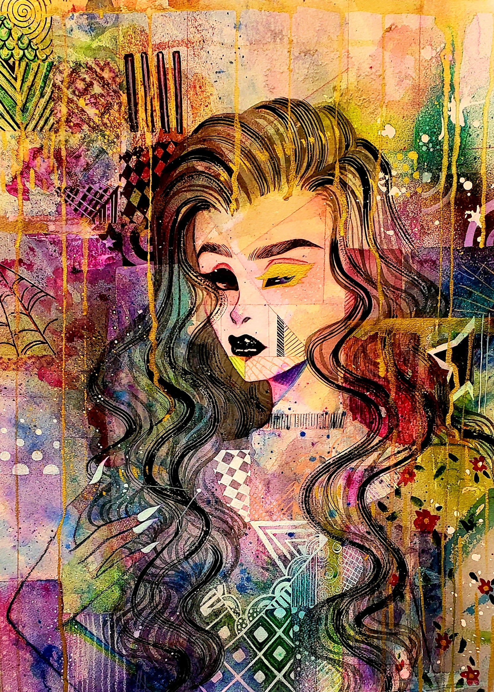 Started march off with a project for my intermediate watercolor class. We had to use a visible grid to paint our self portrait. Each portion of the grid had to have different textures as well. So i got to experiment a shit tone with techniques i wouldnt dare to normally do, but i had fun and learned a lot
