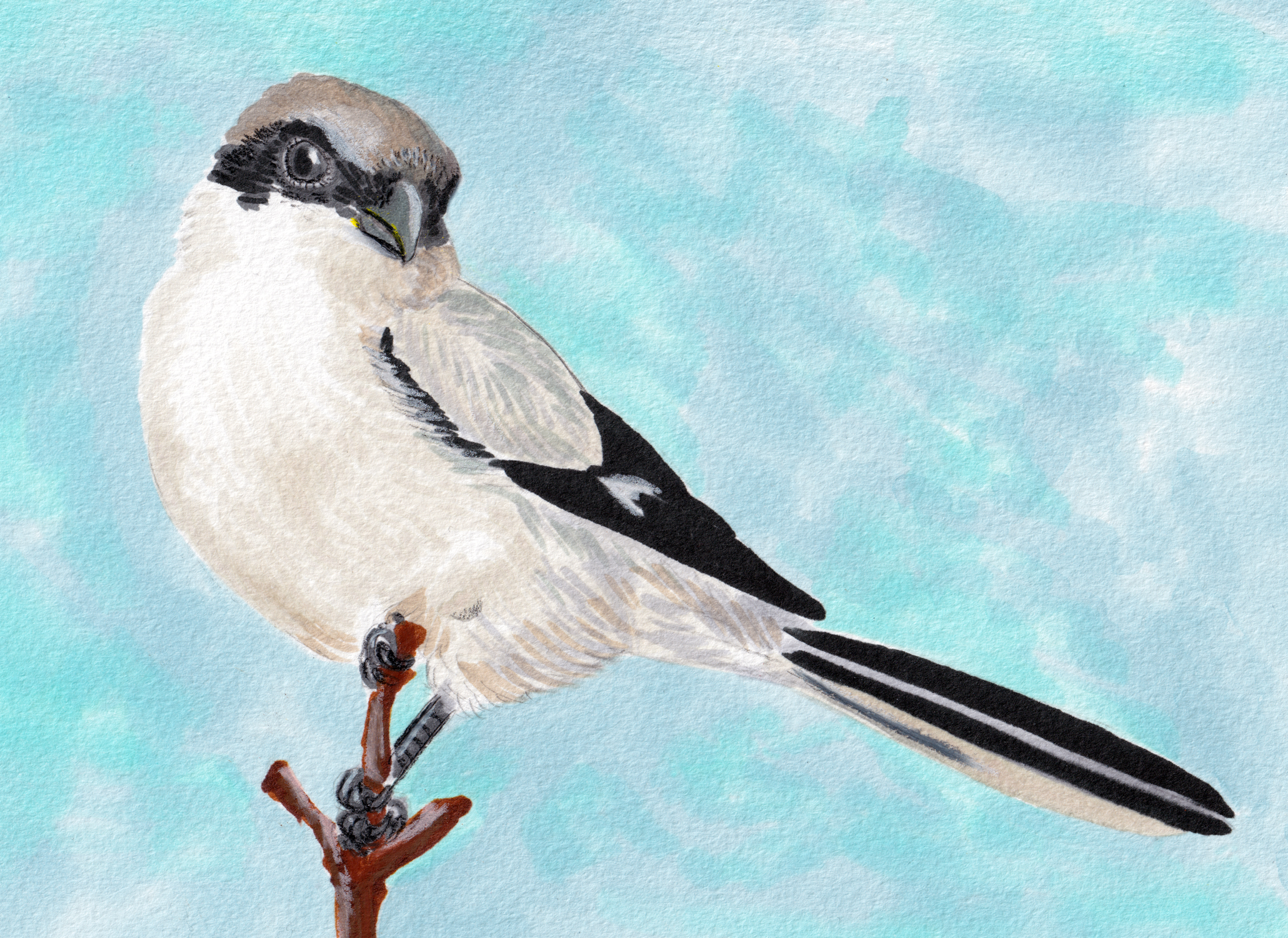 I drew a loggerhead shrike! So basically, the OC of one of my friends is nicknamed 'shrike' so it stands to reason I draw one at least once! This was done with alcohol markers and prismacolor pencils.