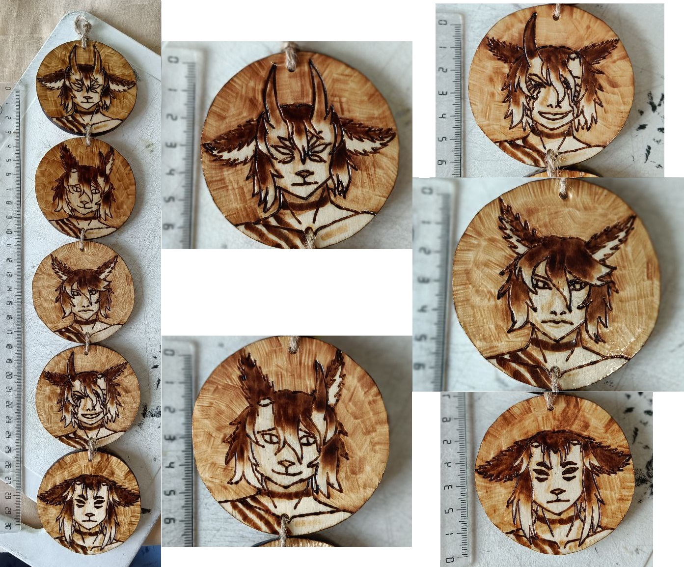 • A not-so-little Secret Santa I did for a friend of mine, who I think does not have a profile in here. This is Aether, AKA Naoto, her FFXIV WoL. She has quite a lot of different forms, so I thought about doing some woodburning portraits for each of them. I'm so fucking proud of how this came out, and my friend spent like a whole minute looking up and down this in shock because of how much she liked it, so I call it a success xDDDDD If you want to know more about little Aether here, you can go ask her creator on Bluesky: https://bsky.app/profile/aetherartworks.bsky.social
