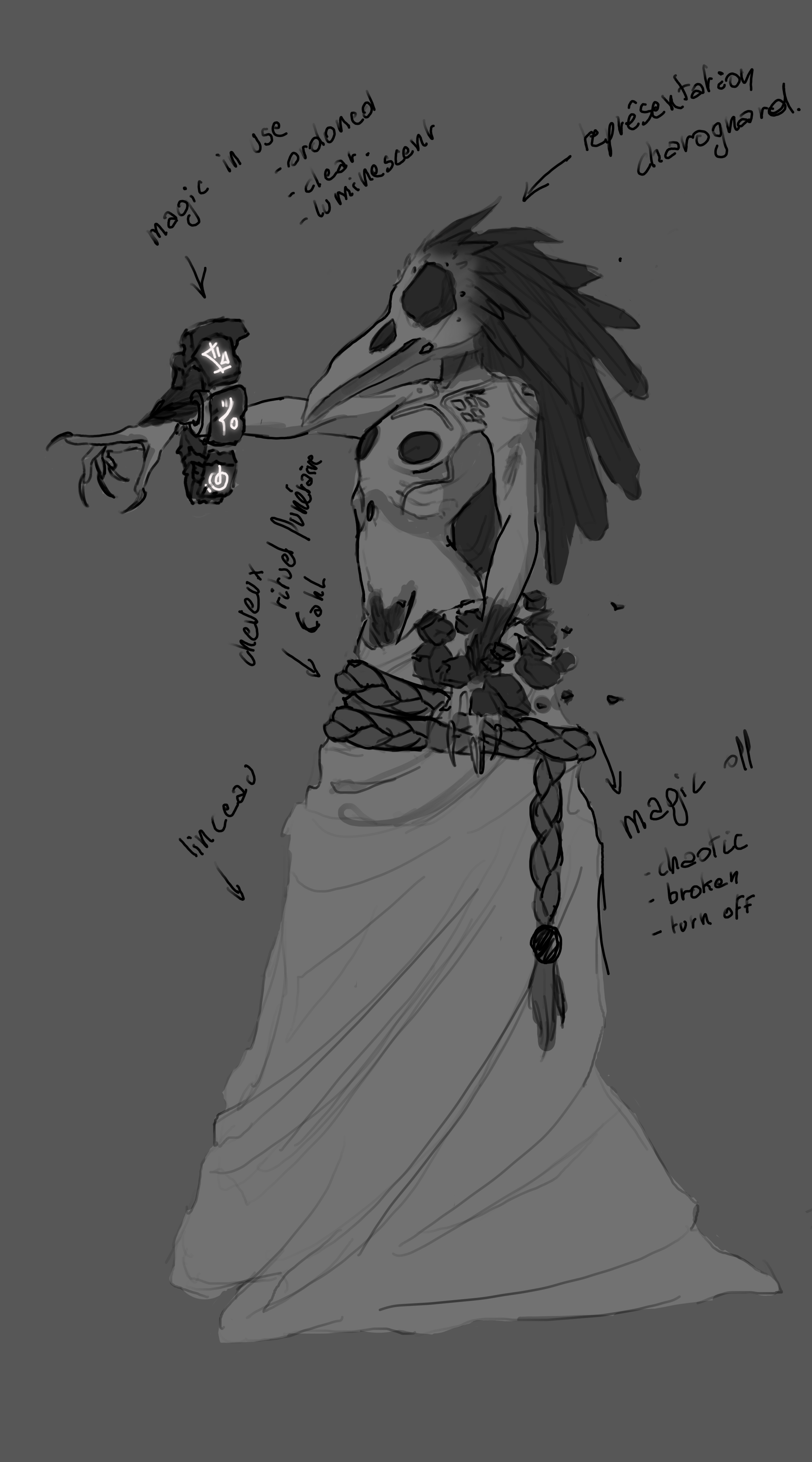 In the south, for the raiders, it is common to have a representation of the death somewhere during missions or on their uniforms. It is a way of showing gratefulness and welcome death if she ever choose to come for them, it's a way of making sure she will be kind and gentle when she comes. In the other factions on the contrary, having a representation of any kind of her is bad luck, as it's like asking her to come visit. _"And as I see all the crows land around me, I can feel she sent all the souls she could so I wouldn't die alone. All I can do is thank her and hope she have a place for me as one of her soldier souls, like the ones surounding me."_