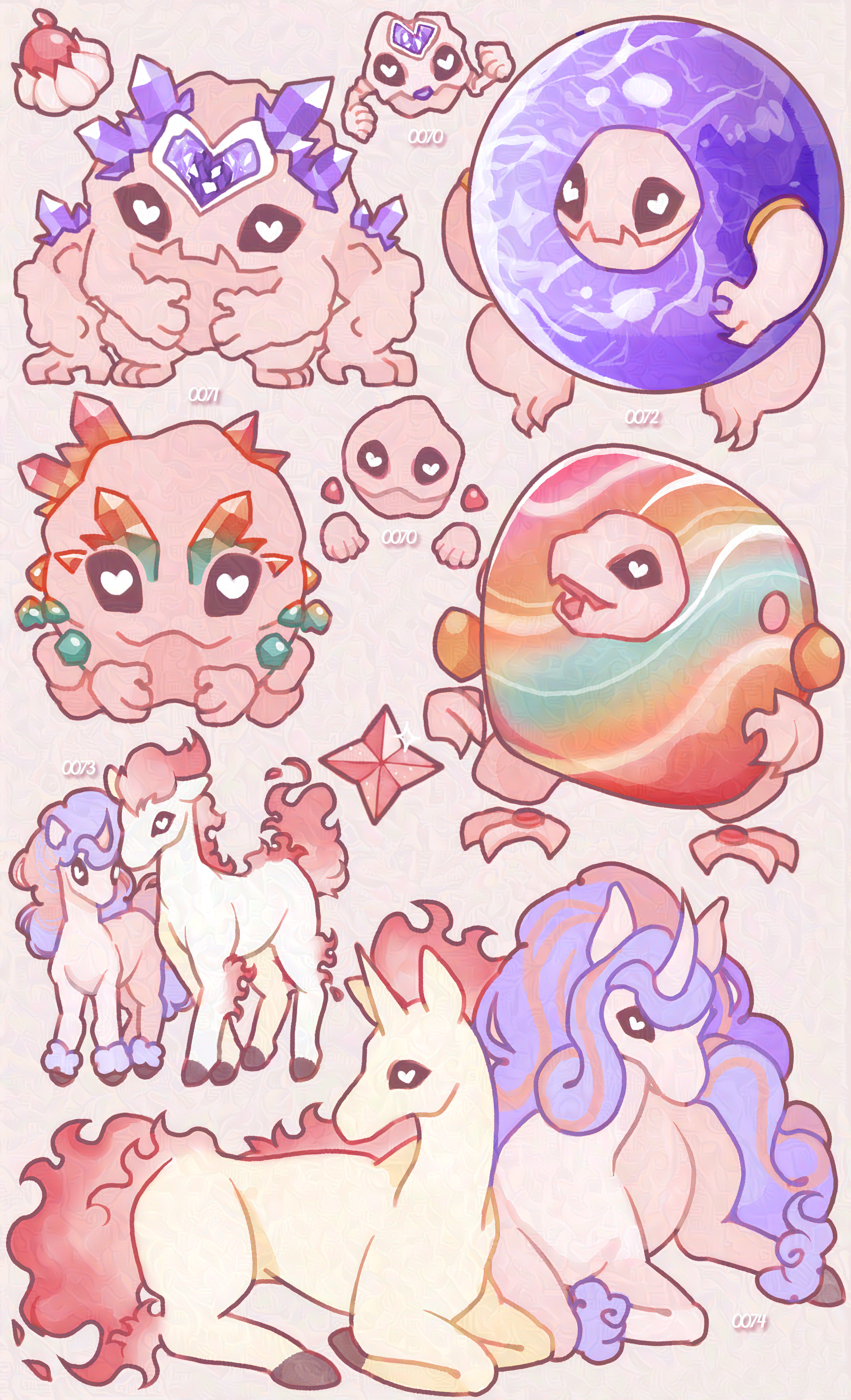 Pinkumon 74 to 78! - Geodude, Graveler, Golem, Johto & Alolan - Ponyta, Rapidash, Johto & Galarian! Pinkumon is my series where I redraw or redesign pokemon in my personal favorite aesthetics and colors!