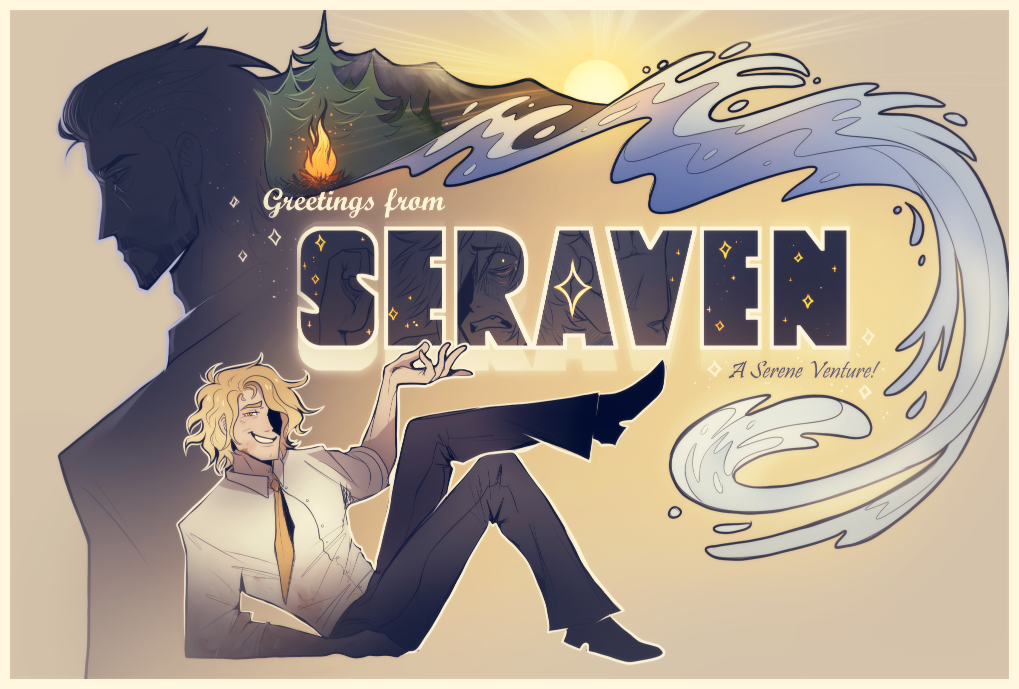 fun lil postcard design for my storyworld, Seraven!! had to make the big letters by hand instead of use an actual font since most didnt have the room i needed rip