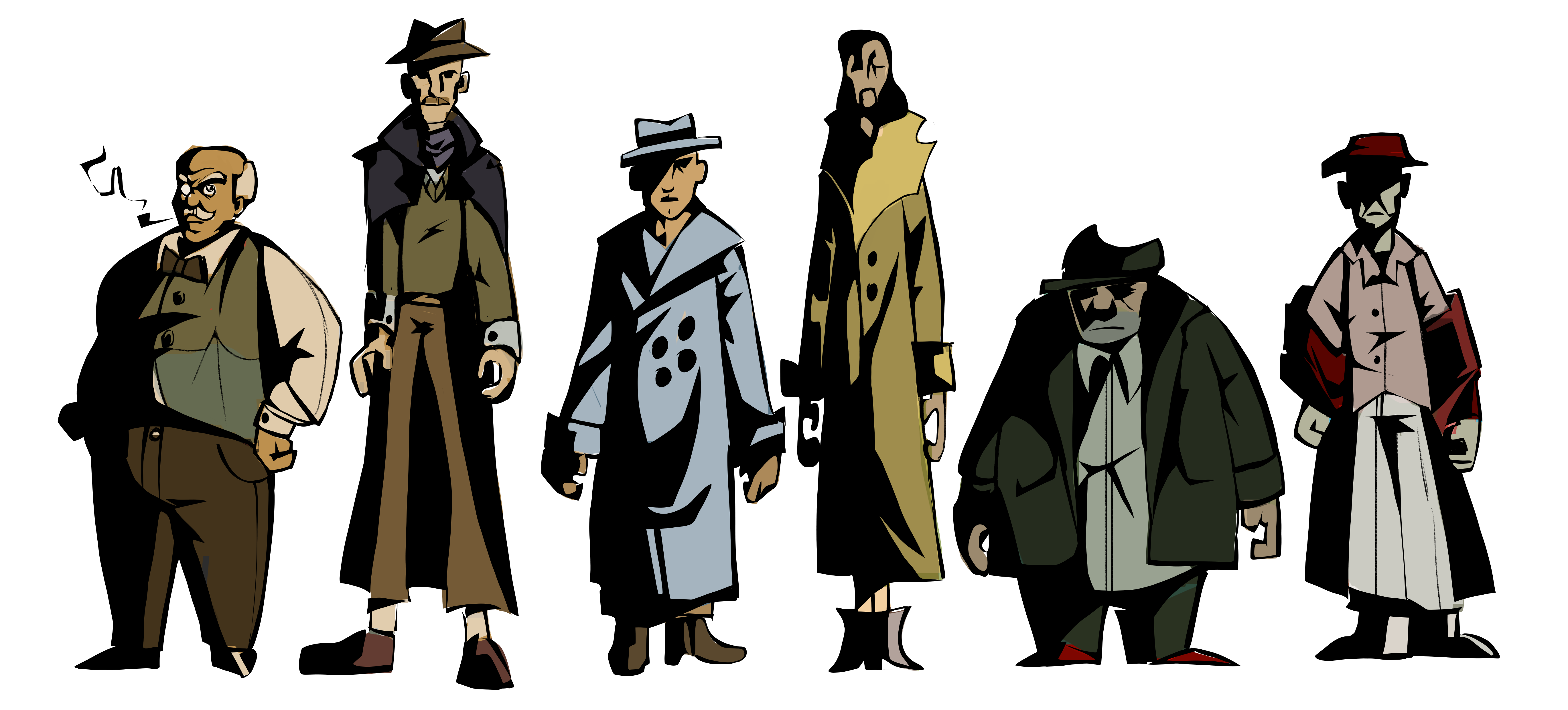 The designs are inspired by noir cinema and Mike Mignola's work.