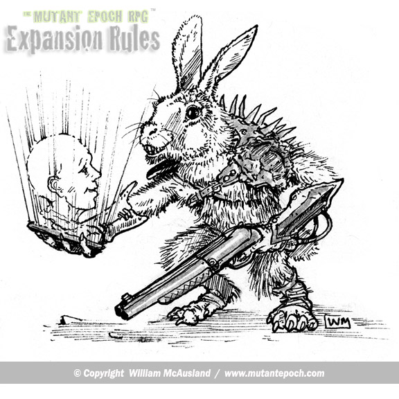 They are not seen as a threat and are regarded as cute and cuddly by most humans,so are welcome in trading settlements if they accept mutant humans, although during times of famine, these rabbitoids are also welcome because they are edible and their skins make for splendid pelts. For this reason, these hybrids are always on their guard, especially around the likes of normal and bestial human felines, raptors, canines, snakes, and weasels.