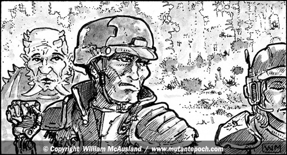 Hand drawn ink art by William McAusland from page 37, from The Mutant Epoch RPG Expansion Rules book: https://www.amazon.com/dp/0994923791 or https://www.outlandarts.com/expansionrules.htm