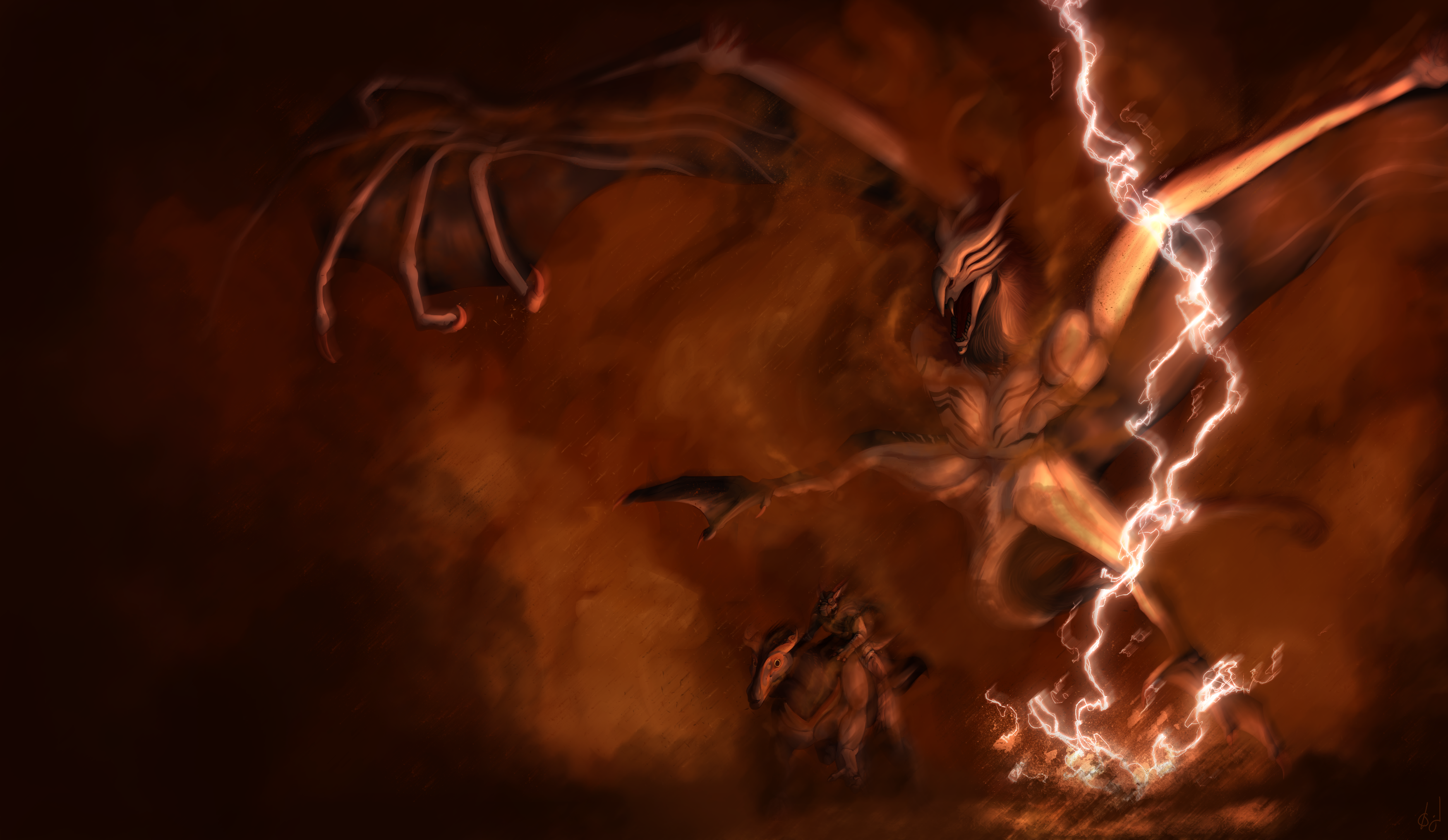 Trackenshaw -------------- The trackenshaw hunts only in sand storms because it's so heavy. Since the atmosphere is so dense on Sertha it is really the only reason it is allowed to fly with those wings. Its soars for the majority of its life. It sleeps up in the sky and does other activities far off the ground. Sand storms make the atmosphere even denser where they are so they hunt specifically at those times because it's easier for them to move around. The vertical slits in their faces are loaded with organs that read the surrounding area. Making the animal roughly capable of knowing where and when the ever frequent lightning will strike. They make a call akin to a air raid or tornado siren. They hunt by slamming into things and griping them with their whole body. They hunt indiscriminately, which combined with the slam into things does get them killed sometimes. Whether they take on something that will get them, or slam into the ground going after a tiny thing and kill themselves. Another reason for hunting in sandstorms is because of the crazy lighting that happens, lighting the brush and plants ablaze. Creating major updrafts from which they are able to use to lift their extremely heavy bodies back up to the sky. But in the event they don't have updrafts or the updrafts are far too weak, they are fucked. Something will get them, or multiple smaller somethings will bully them until it drops. The taming of trackenshaw is extremely rare. They are so situational to get and the tools and area needed to provide for one is simply not worth the time. They as well actually cannot comprehend strength and size. So they will crush their owner then get sad about it, or wreck anything and everything leaping about and jumping.