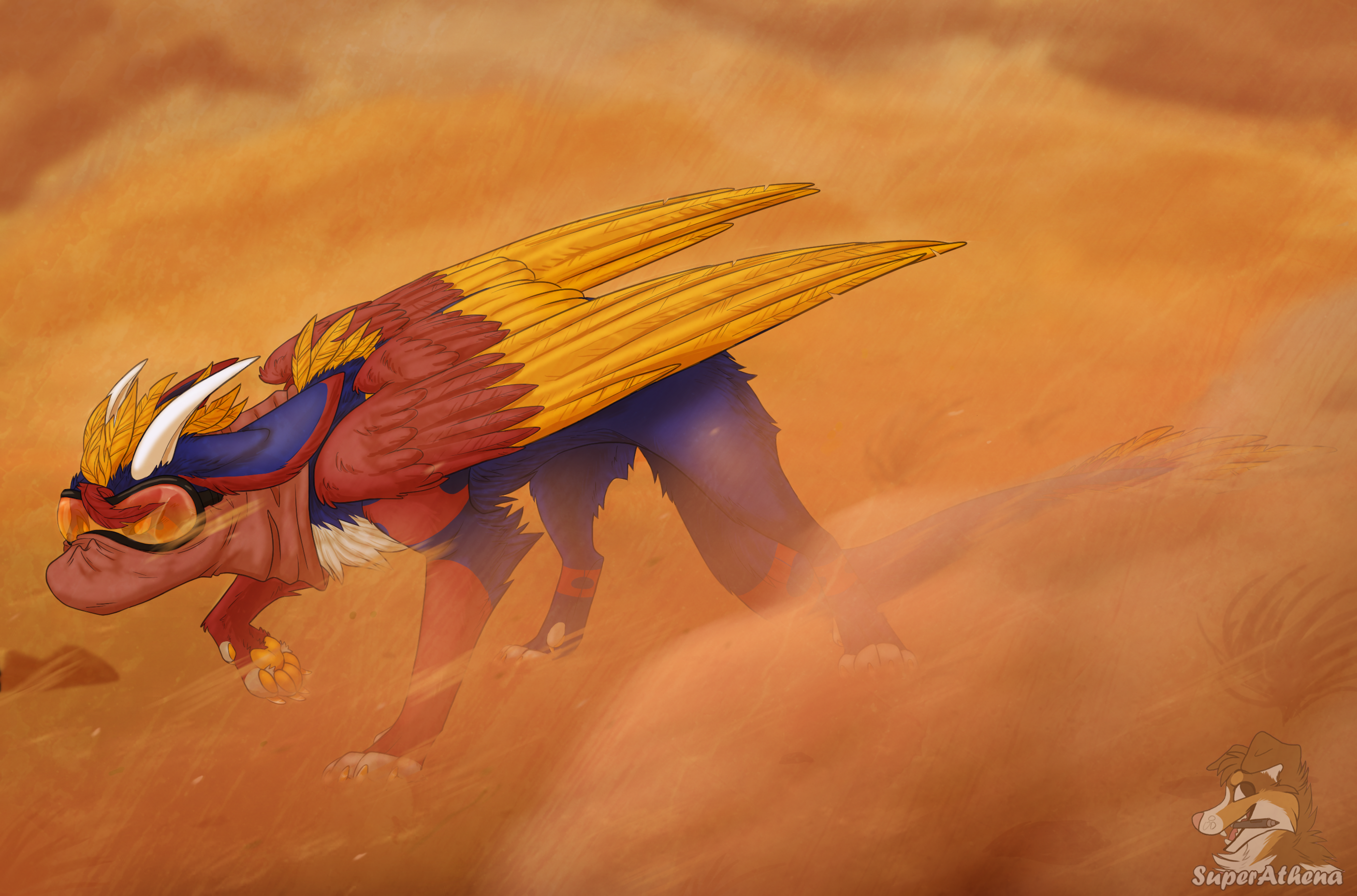 They hunt indiscriminately, which combined with the slam into things does get them killed sometimes. Whether they take on something that will get them, or slam into the ground going after a tiny thing and kill themselves. Another reason for hunting in sandstorms is because of the crazy lighting that happens, lighting the brush and plants ablaze. Creating major updrafts from which they are able to use to lift their extremely heavy bodies back up to the sky. But in the event they don't have updrafts or the updrafts are far too weak, they are fucked. Something will get them, or multiple smaller somethings will bully them until it drops.
