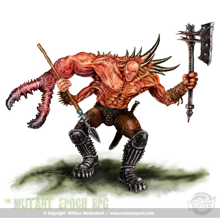 • From the cover of The mutant Epoch role-playing game, this brute can hold the line all on his own. Photoshop smudge painting over graphite drawing.