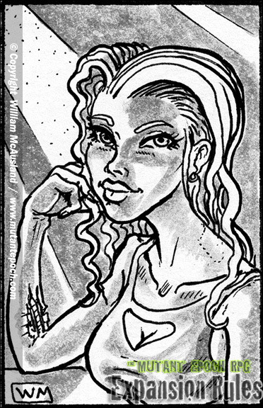 These pleasure focused androids were among the most common varieties of androids ever made. While other models were produced in far larger numbers, such other designations and designs were often wiped out in greater numbers than concubine units. Military models, for example, saw action on both the side of anti-human Mecha AIs and human forces, while many industrial units were destroyed in bombings, terrorism, accidents or hazardous duties. Household androids as well as service industry models were likewise wiped out because they were easy to detect as non-humans, and eliminated by those who feared all machines. Concubine androids survived into the new era in greater numbers than expected because so many passed as humans, or else belonged to a human who concealed and protected the unit out of either financial considerations, lust, or emotional reasons. In short, concubine androids of old were nearly always the property of an individual, not a government or corporation, and so hidden away and cared for, often because their owner had developed a relationship with the sexy, always attentive and empathetic machine. Hand drawn ink art from page 33, from The Mutant Epoch RPG Expansion Rules book Check it out here: https://www.outlandarts.com/expansionrules.htm