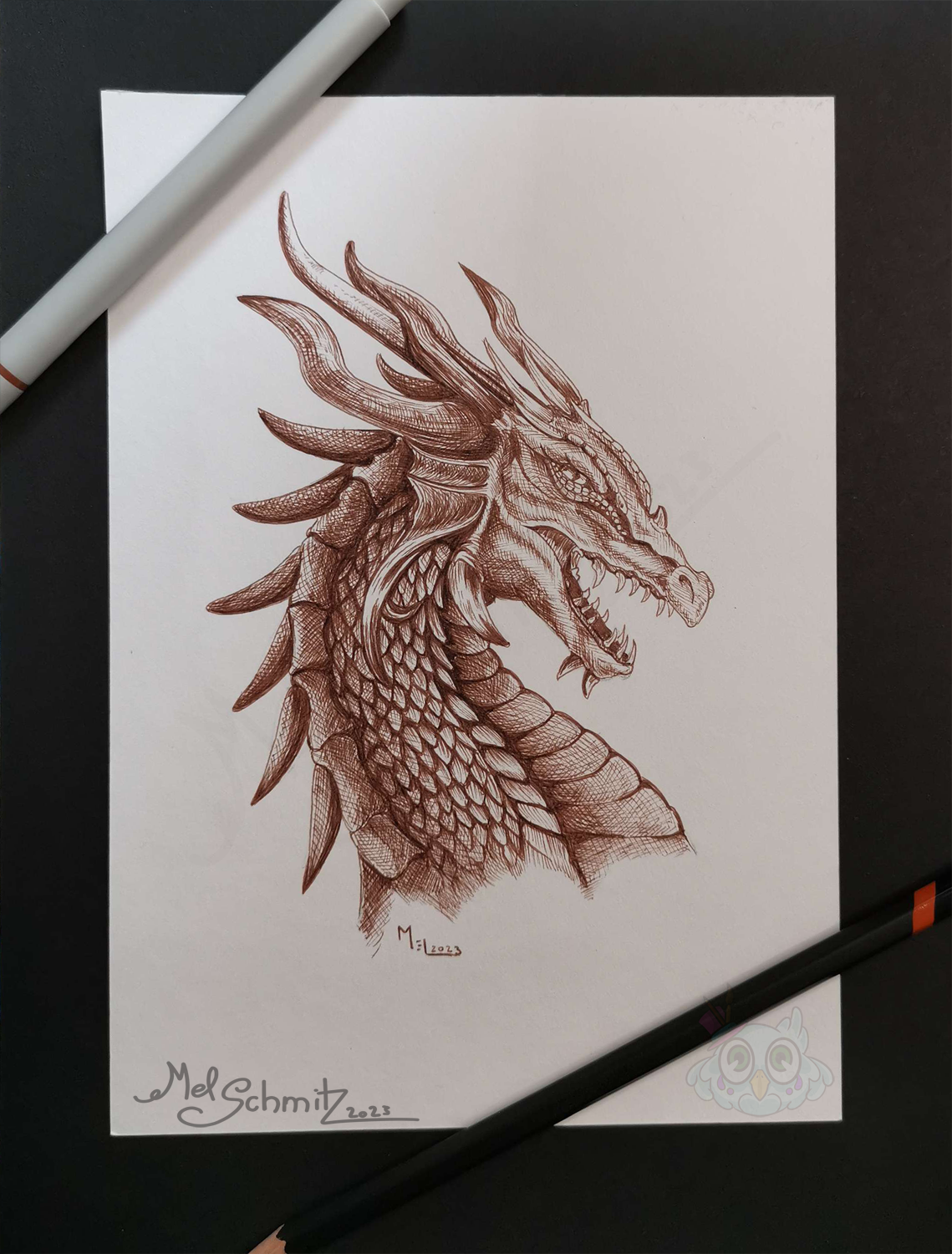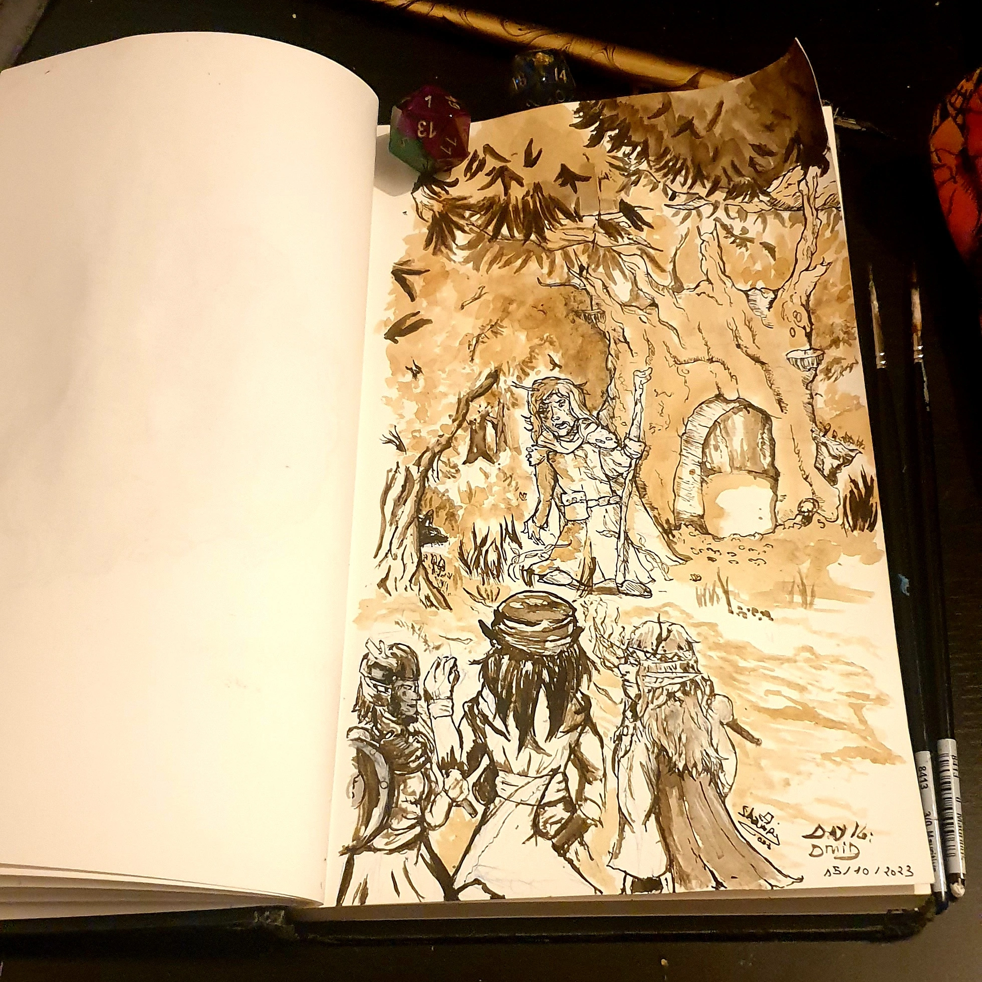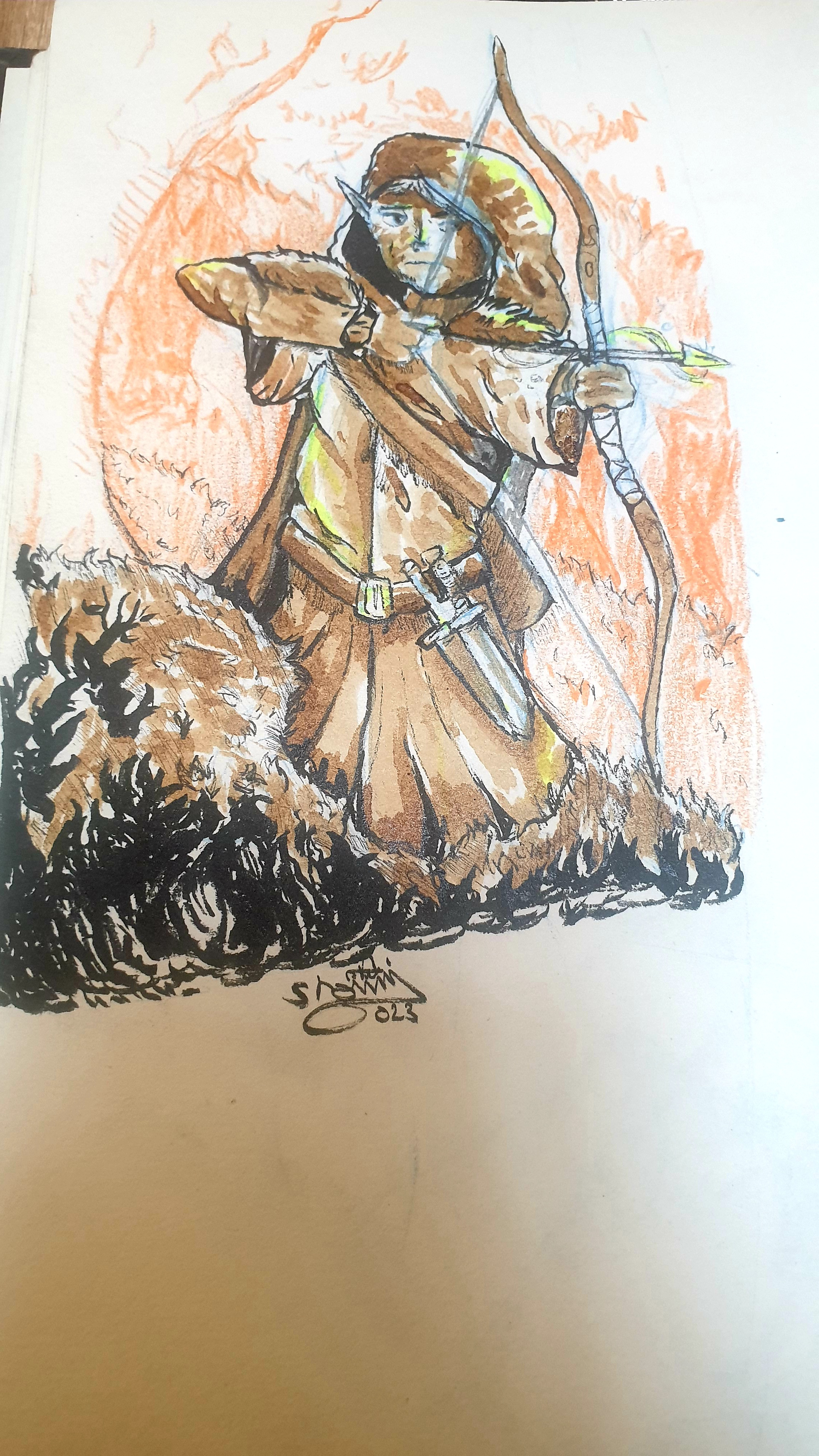 graphite on white paper with watercolors