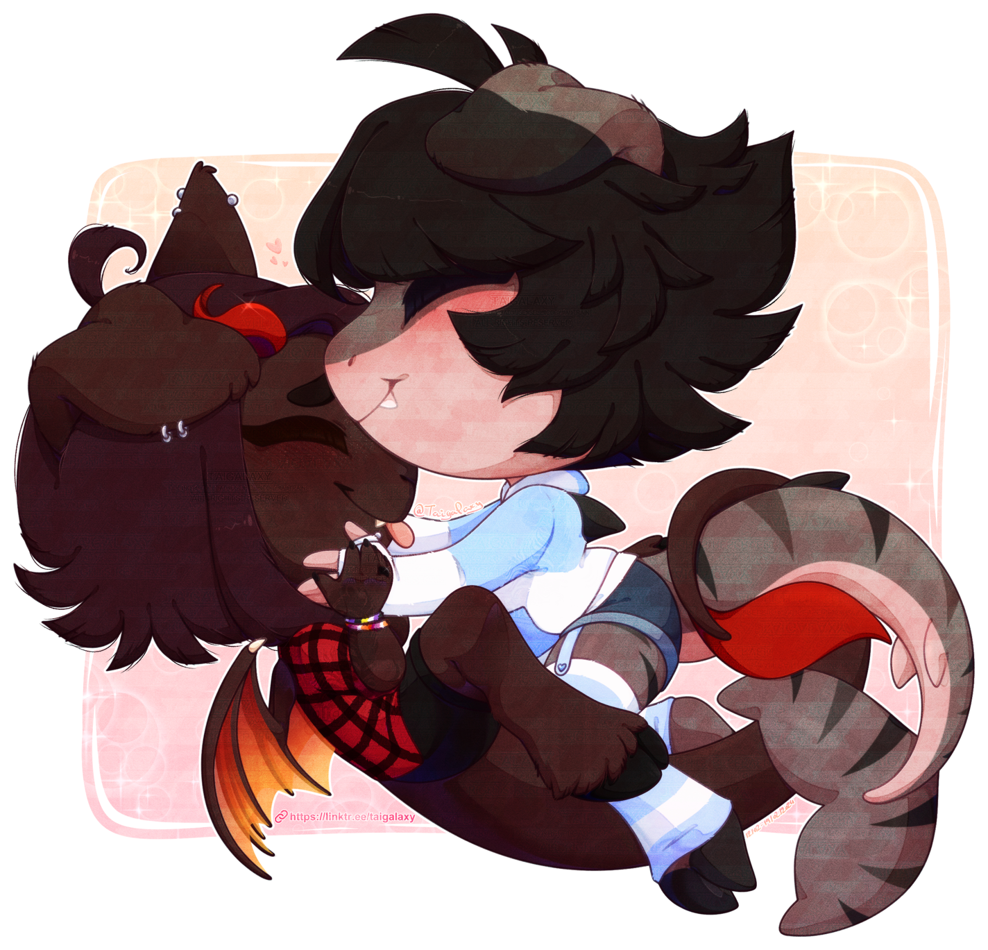 Lil gift art for my partner <3 Crazy to think I've been with them for 8 months already,,, Shark/dog on the right - He/They Demon on the left - They/Them