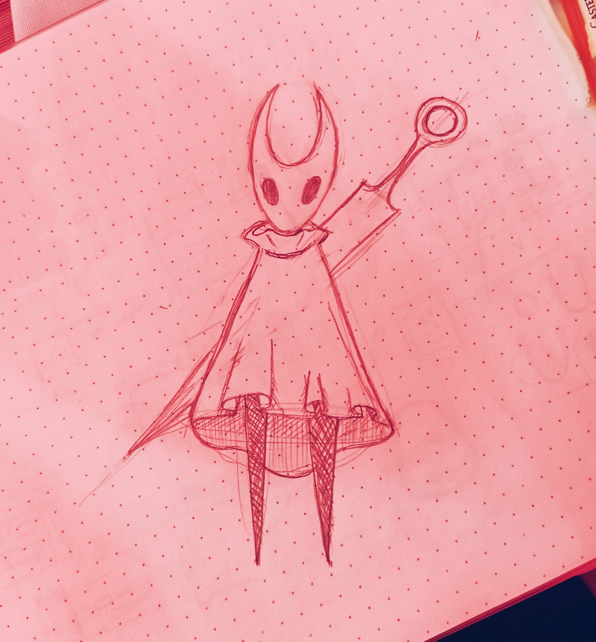 sorry that i've been silent for a whole month, real life's been weird to me lately i still do have a bunch of art in the backlog(hopefully) but before I get back into looking at my past work, i wanted to share a doodle i made of hornet silksong during a family event because i've been playing hollow knight recently and, good golly grief, it is GOOD!