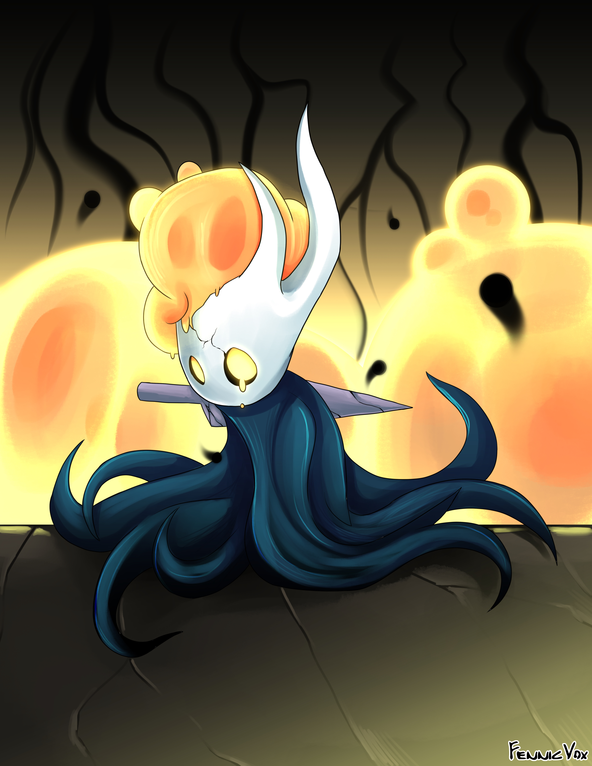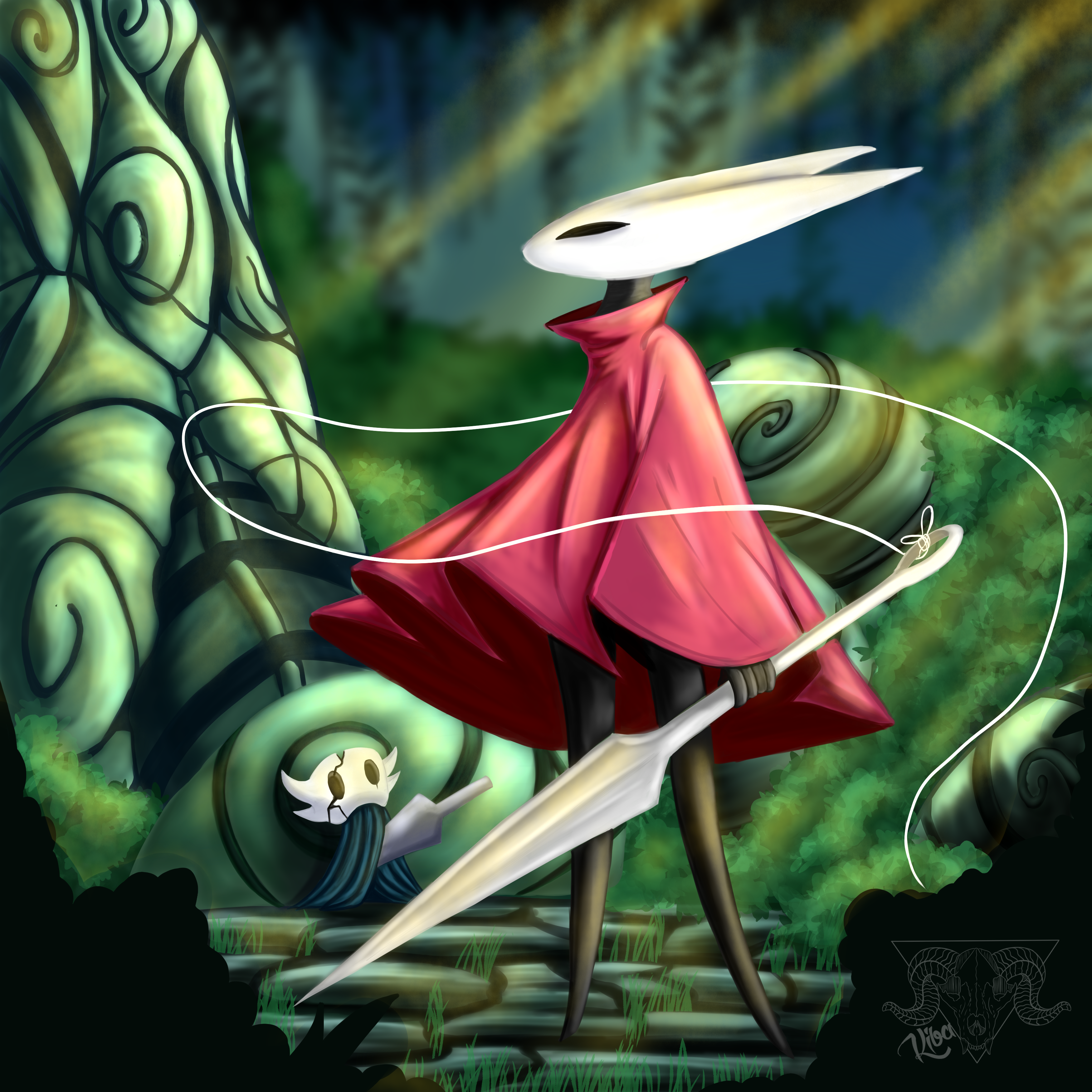 Was needing to doodle something to practice. Then, Silksong finally released, AND I've always been a fan of that series' character designs, figured I'd doodle up Hornet, and somehow managed to make the least lore accurate background ever...