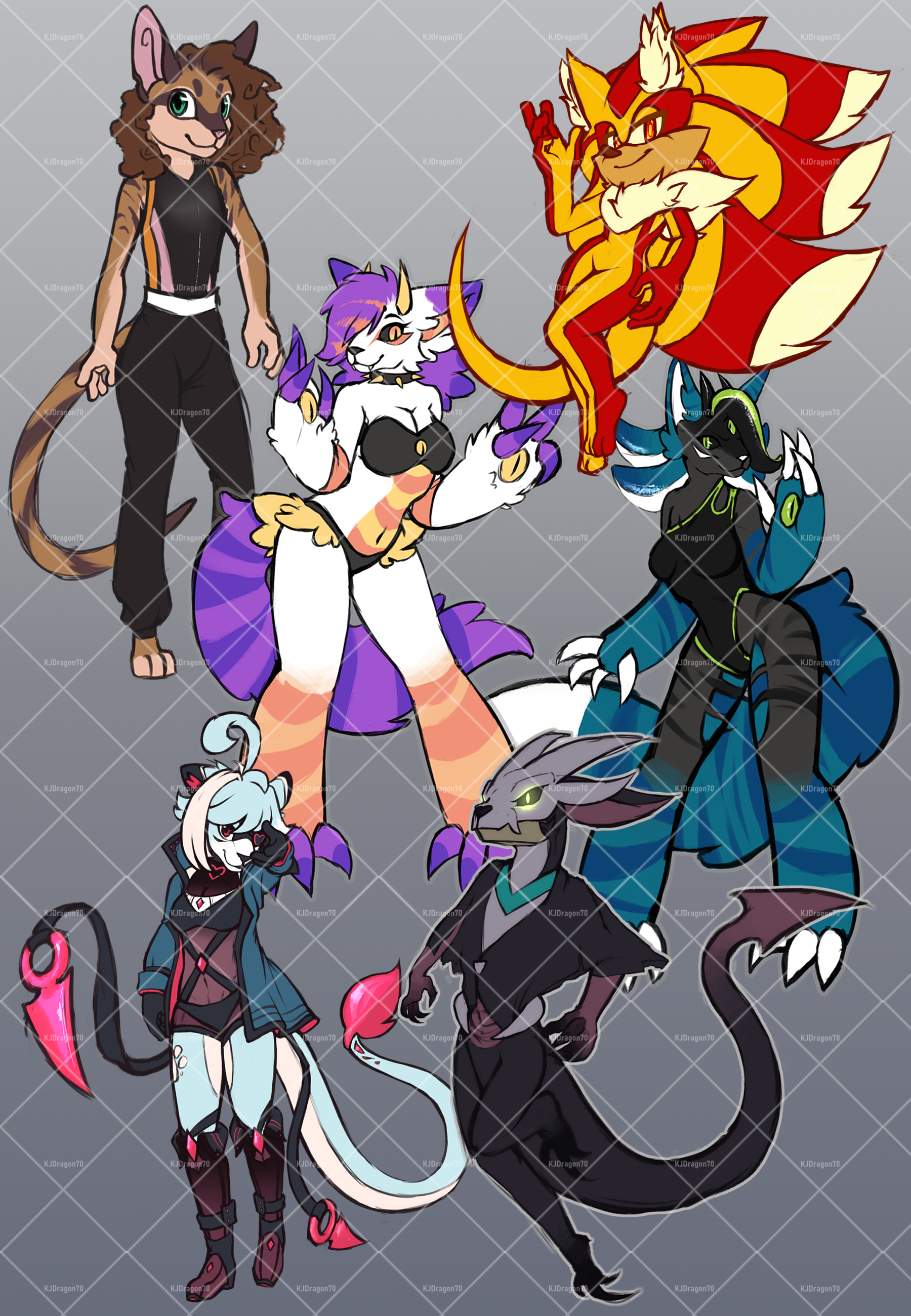 I didn't want to spam all of my sketchy references so instead, I'm putting them here in one big spot! In Order we have: Top Left- Edward Adams redesign Top Right- Slight redesign/current reference (that doesn't crash every site I put it on like the last one I did of them LOL) of Daikim Center- Actual goddamn reference of Moniko now that she suits my original story more Center Right- Moniko's counterpart that I haven't shown publicaly before, Gizmo! She shares the same physical body as Gizmo hence the similar posing Bottom Left- An adopt I got from ArtsySiege/Liquordiction a while ago given a proper reference Bottom Right- Very slight redesign/reference of Kritanta, the big idiot "Dad" himself Almost all of these have been shown on my social media so please feel free to follow me (I'm most active on Twitter and ToyHouse)! Links in my bio :)
