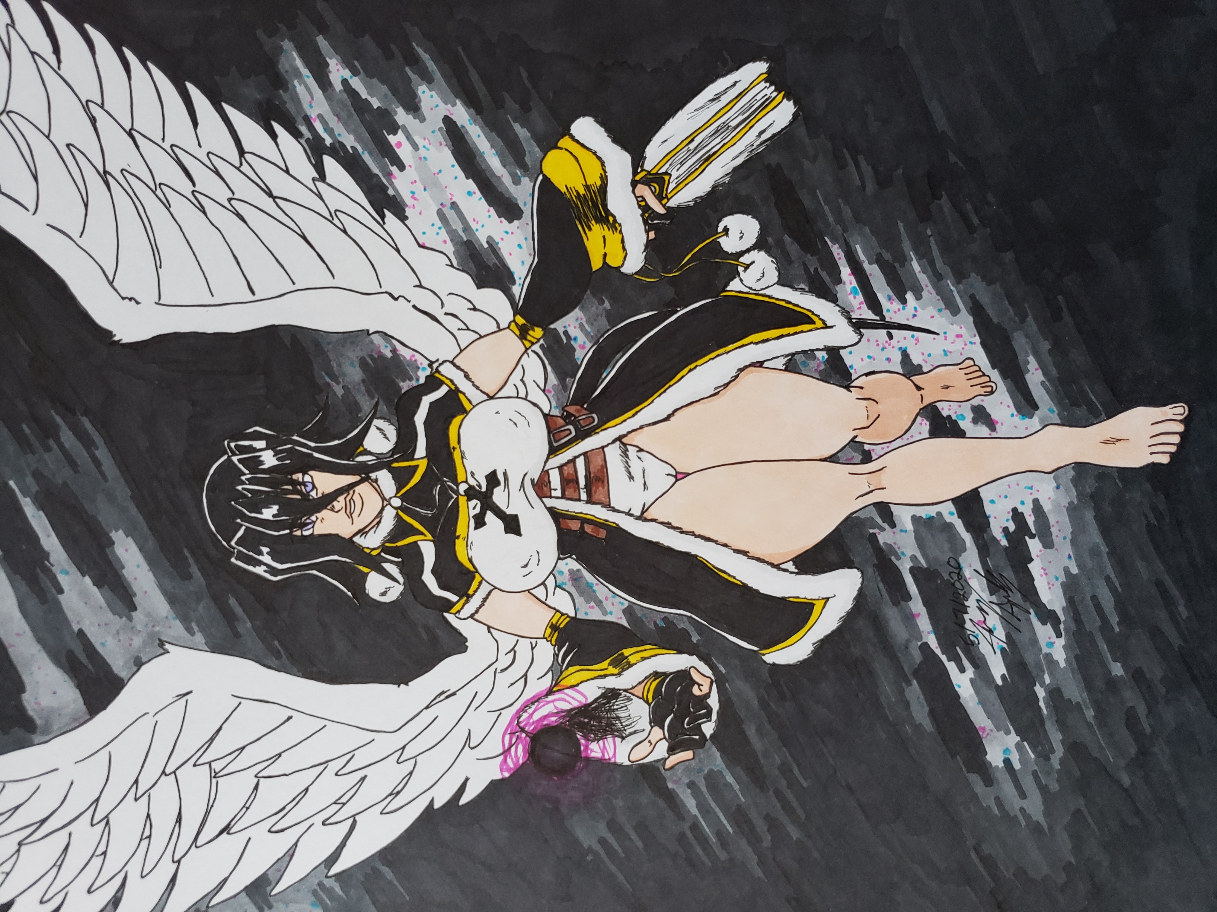 Name: Omega Title: Goddess and guardian of sky, space, and heaven Hair color: black Eye color: cloudy lavender H't:5'6 W't: unknown Age: limitless Weapons: Tengoku Tessen (Tessen Fan) Bio: Omega is the third oldest of her sisters and the leader of her team. She was chosen to be the leader due to her power and her natural leadership skills. She's level headed and able to speak with a strong definitive tone when serious. Outside of battle and being serious, she is quiet and can be shy and well say few to no words with certain people. Besides Lina, Omega has the strongest bond with Leo and tends to hang around him whenever she gets the chance. She likes being by his side and enjoys just the company as both aren't good with starting up conversations. Like Lina, Omega is special among her siblings as her eyes are a different color than her hair but unlike Lina, Omega has angelic wings, making her the only one of her sisters to have them and be unique. Omega's appearance is a pale skinned woman, she would be considered Asian by earth's standards (Japanese to be exact), wears a white one piece that leaves little to the imagination, a long black coat like outfit over it, and sleeves that go from her elbows to covering most of her hands, she also wears black gloves, and a gold ponytail hair piece. She, like Lina, wears no footwear or pants. She has the third largest bust among her sisters (Emerald being first and Lina being second, with Hardrock being the 4th). Omega also has small pudgy belly. Omega uses a Tessen Fan in battle which can bring great storms, lightning, and star bursting attacks on her enemies, which Omega calls these her "weak attacks". Beware if she mentions "Tembatsu", as it means ultimate destruction for enemies. Omega is known as a "black hole" as she able to take in anything with no limits or danger to her body. She's also rumored to be able to eat black and white holes.