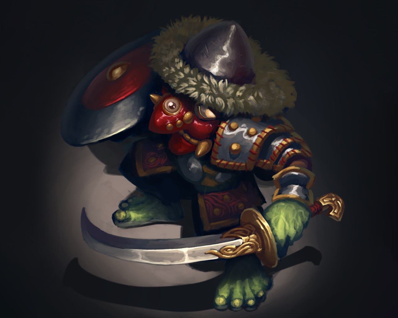 Gobtober 2023 day 6: **Knight** The mask of the Red God gives strength to any green-skinned knight if he is not afraid of the god's gaze. If the knight allows the Red God to look at the world around him through his face, the knight will become practically invincible.
