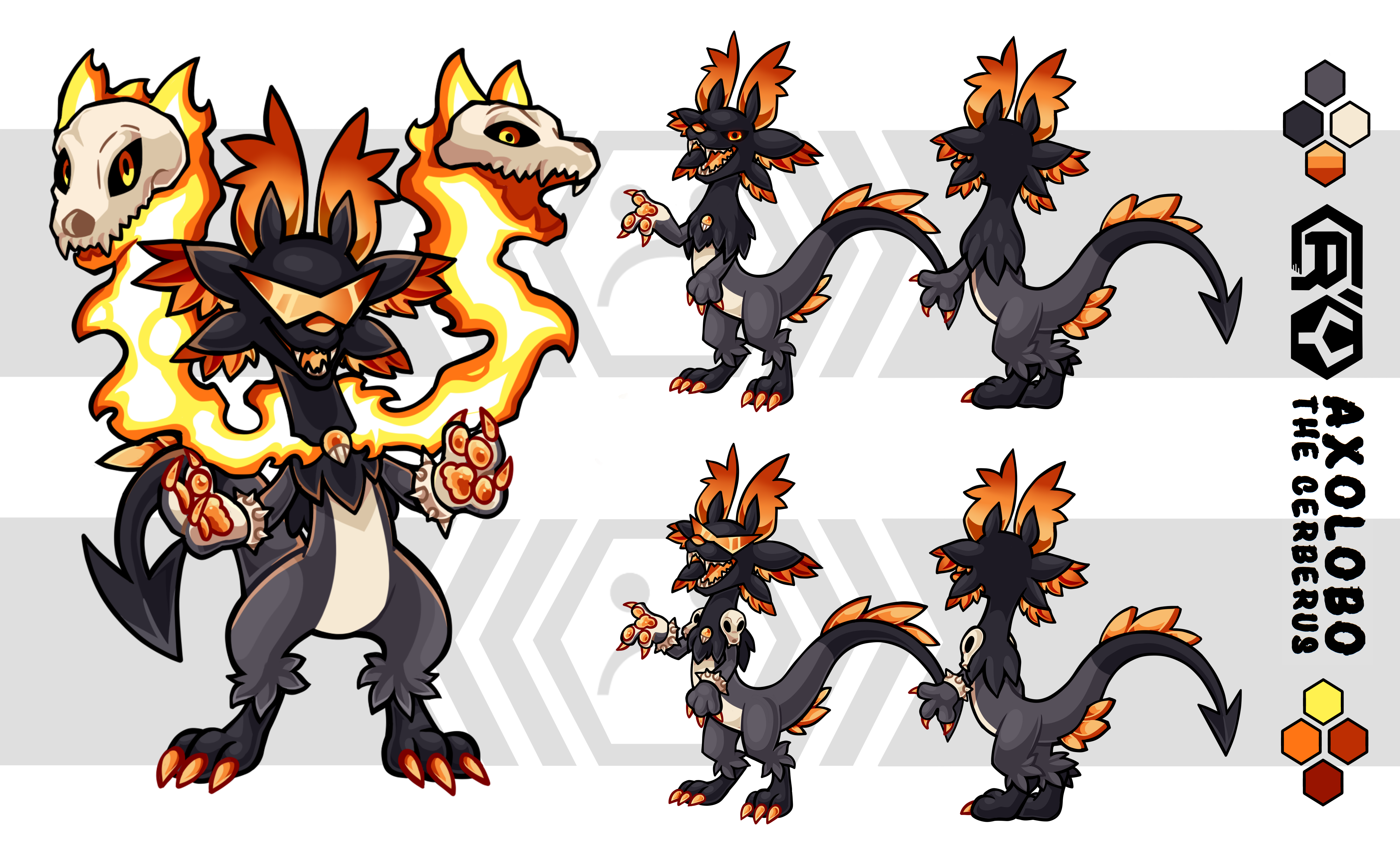 Axolobo is quite confident of his own abilities, and never backs out from a challenge. He is a competitive troublemaker who not only hates losing, but takes losing really personally. Ember is the calmest and more rational of the heads. Blaze is really protective and quiet.
