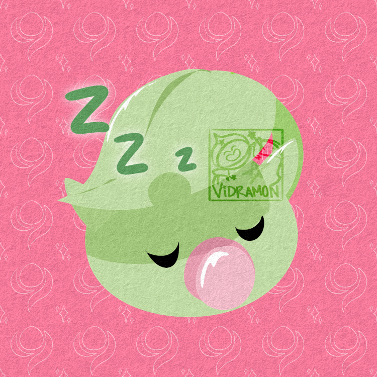 • extra drawing for today, a sleepy leafmon that i turned into an emote for the campdigimonth server :) it is my first digimon drawing of 2024 and will hopefully get me ready to start on my other digi related goals!! :D (the emote version looks a bit different from this for legibility, and if i make some more emotes to go with it i might add them to my ko-fi shop)